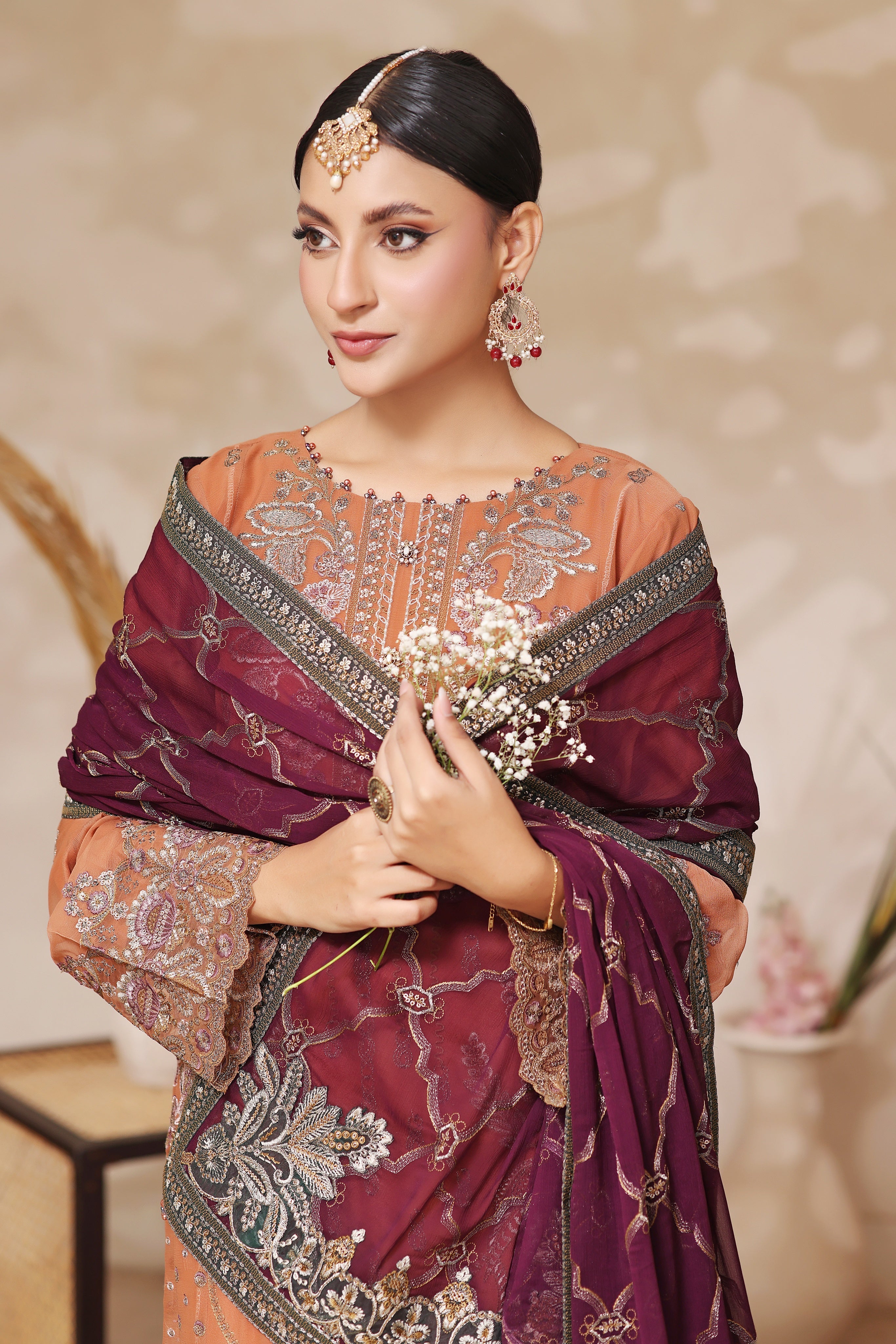 Fiza By Dressline Semi Stitched 3 Piece Chiffon Formals Collection'2025-fiza-semi-stitched-Amber-Glow