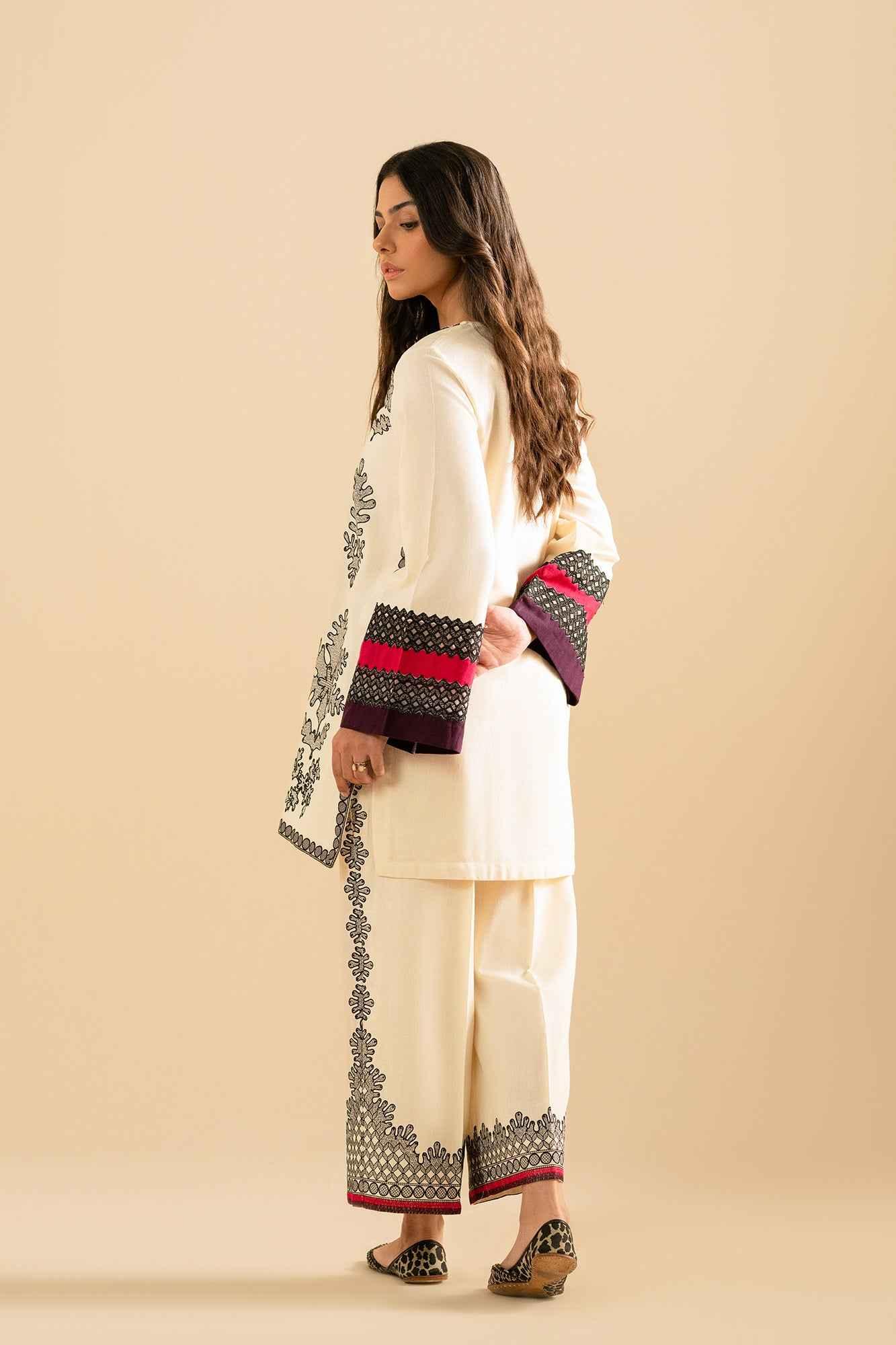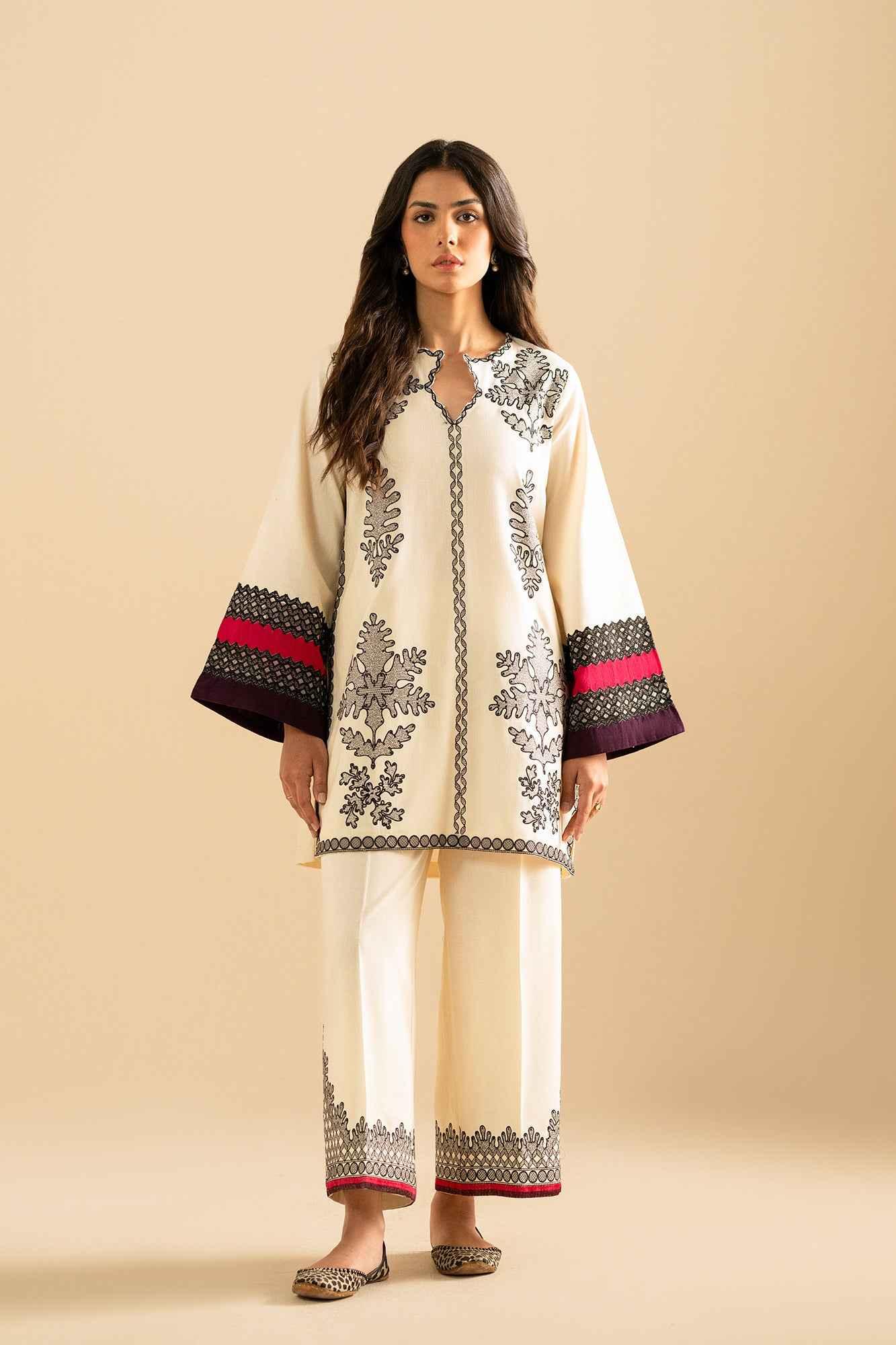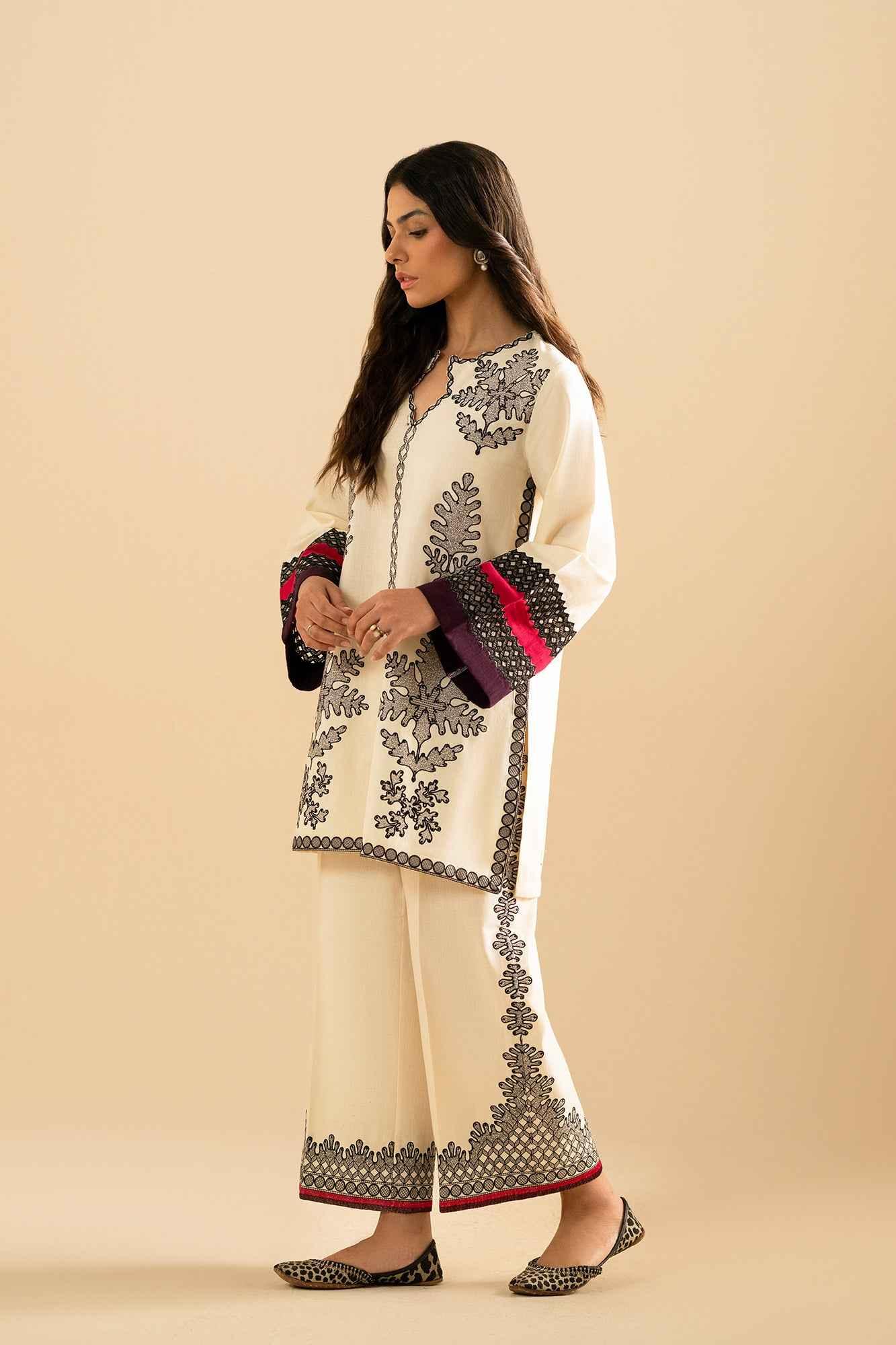 The matching wide-legged trousers boast equally eye-catching prints, adding a touch of drama and flair to your attire. Perfect for casual and semi-formal occasions, this outfit is your go-to choice for making a fashionable statement.