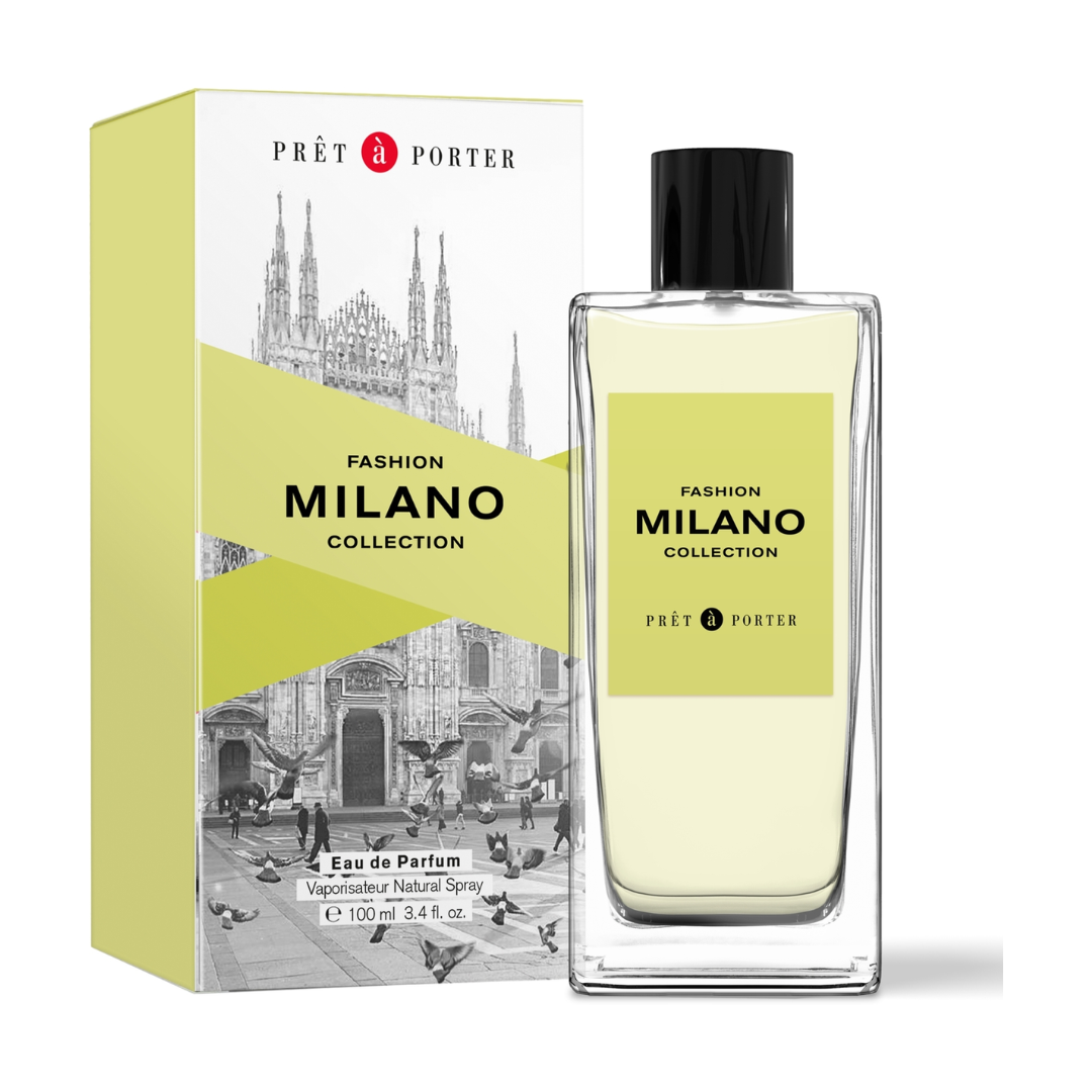 Pret A Porter Fashion Milano For Women EDP 100ml is an amber fragrance crafted for the discerning woman. It opens with luminous top notes of bergamot, lemon, passion fruit, and strawberry, delivering a fresh, fruity introduction. The heart unfolds with an elegant floral bouquet of freesia, jasmine, orange blossom, and violet, creating a captivating middle phase. The base settles into a warm, sensual blend of benzoin, cedar, sandalwood, tonka beans, and vanilla, providing exceptional longevity and depth. This 100ml Eau de Parfum concentration ensures sustained performance throughout the day. Please store safely away from children, avoid contact with eyes, and keep away from open flames or heat sources due to flammability.