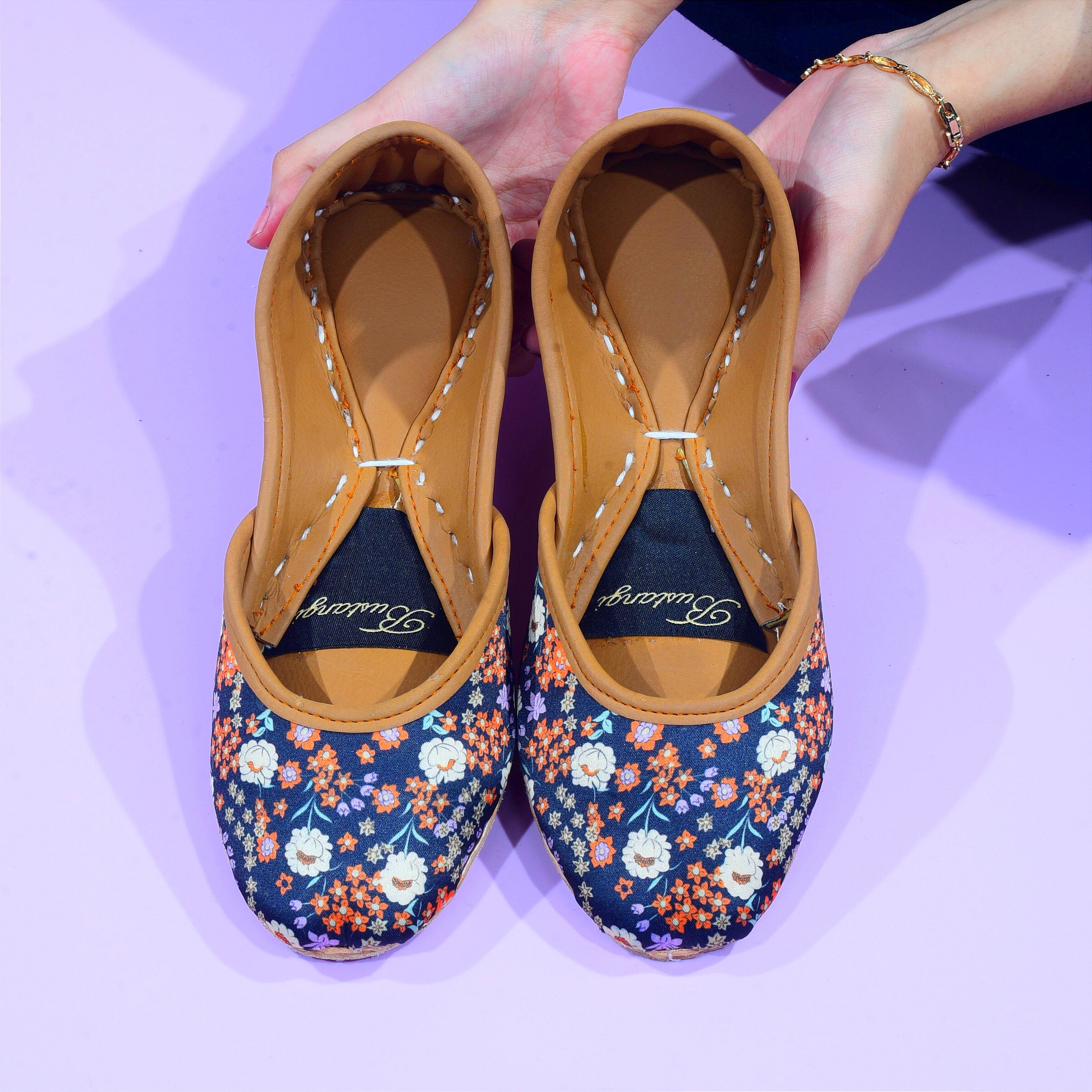 Why Choose Us Bustangi's Freesia Casual Ladies khussa comes in black base with little orange flower print on top. These...