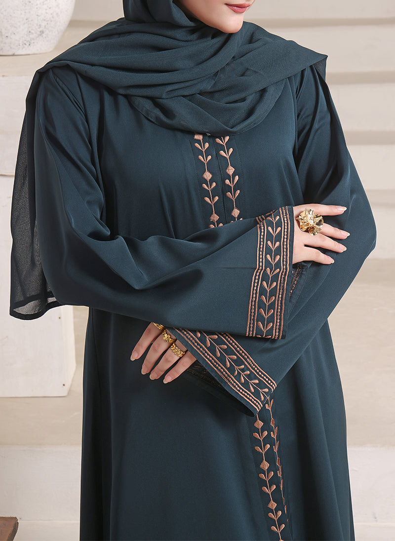 Elegant and graceful, this Hijab ul Hareem Abaya is crafted from premium Nida fabric with beautiful embroidered detailing on the front and sleeves. Perfect for modest fashion, formal events, and everyday wear, this abaya from Hijab ul Hareem combines comfort, elegance, and sophistication ? a must-have for every modest wardrobe