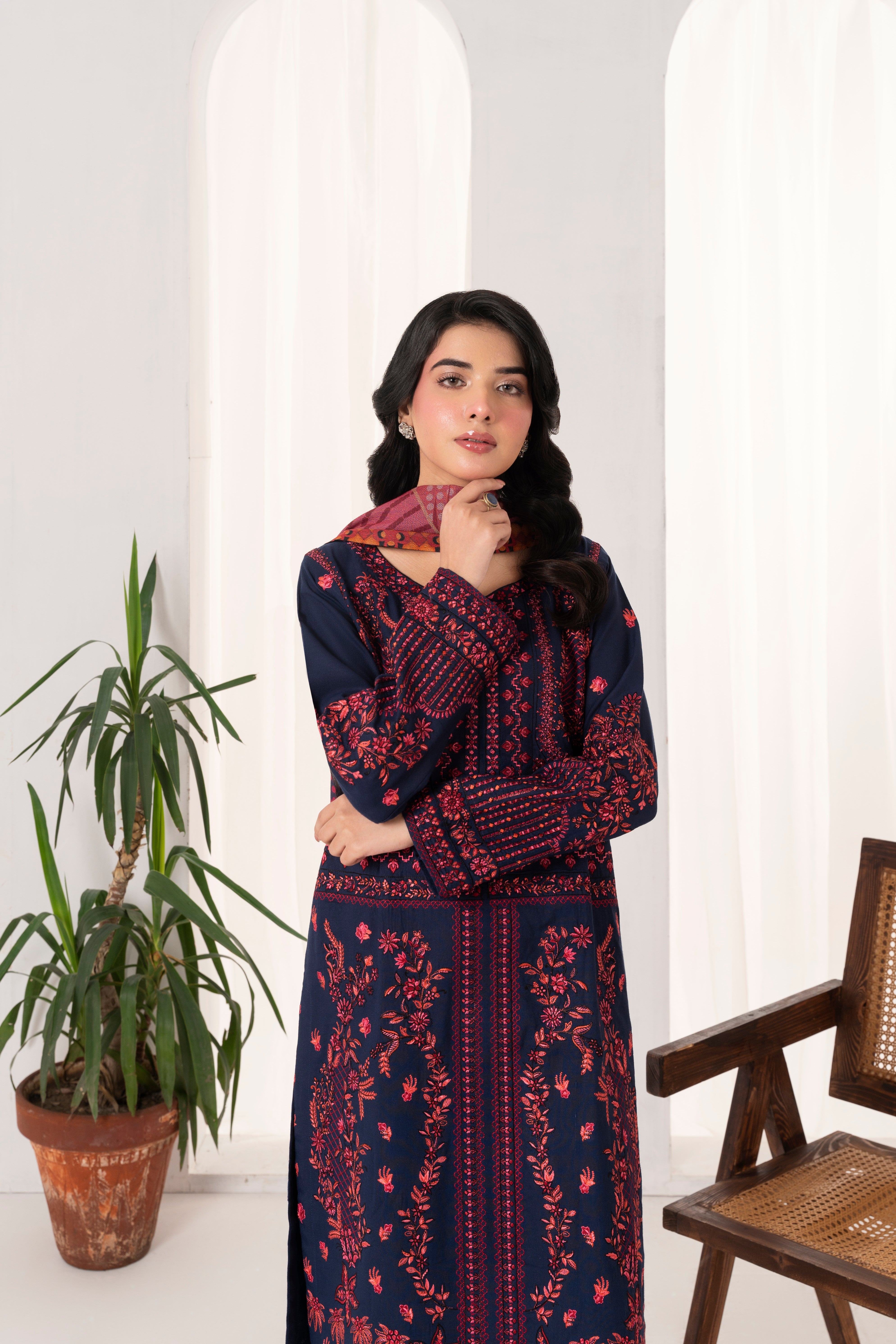 Experience an exquisitely (Unstitched) Embroidered Dhanak shawl with Embroidered Dhanak suit for a new go this winter season.