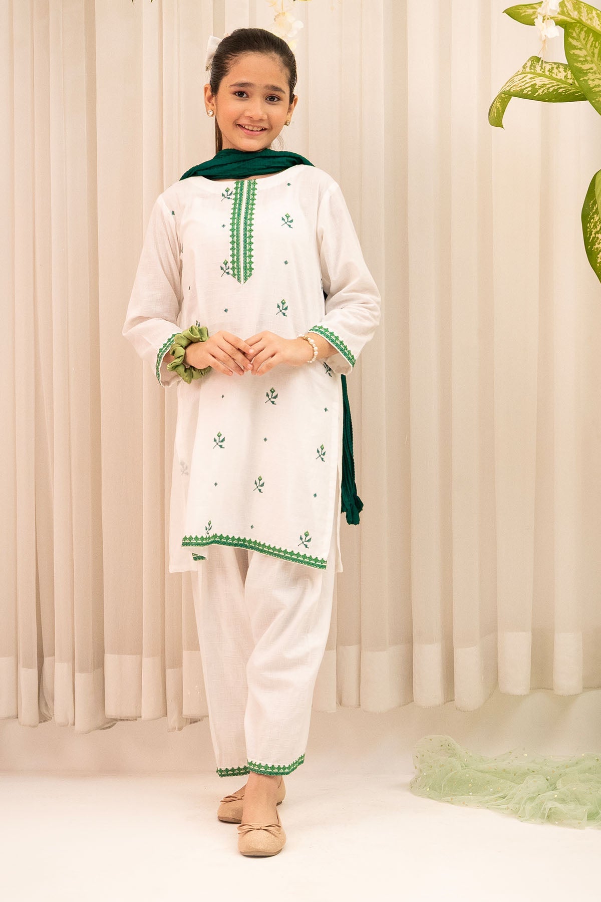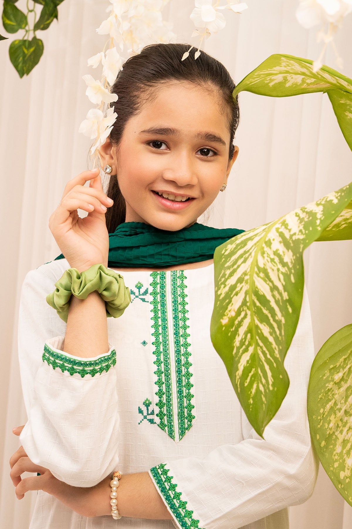 Bottom: White Textured Chambray Cotton Trouser With Embroidery