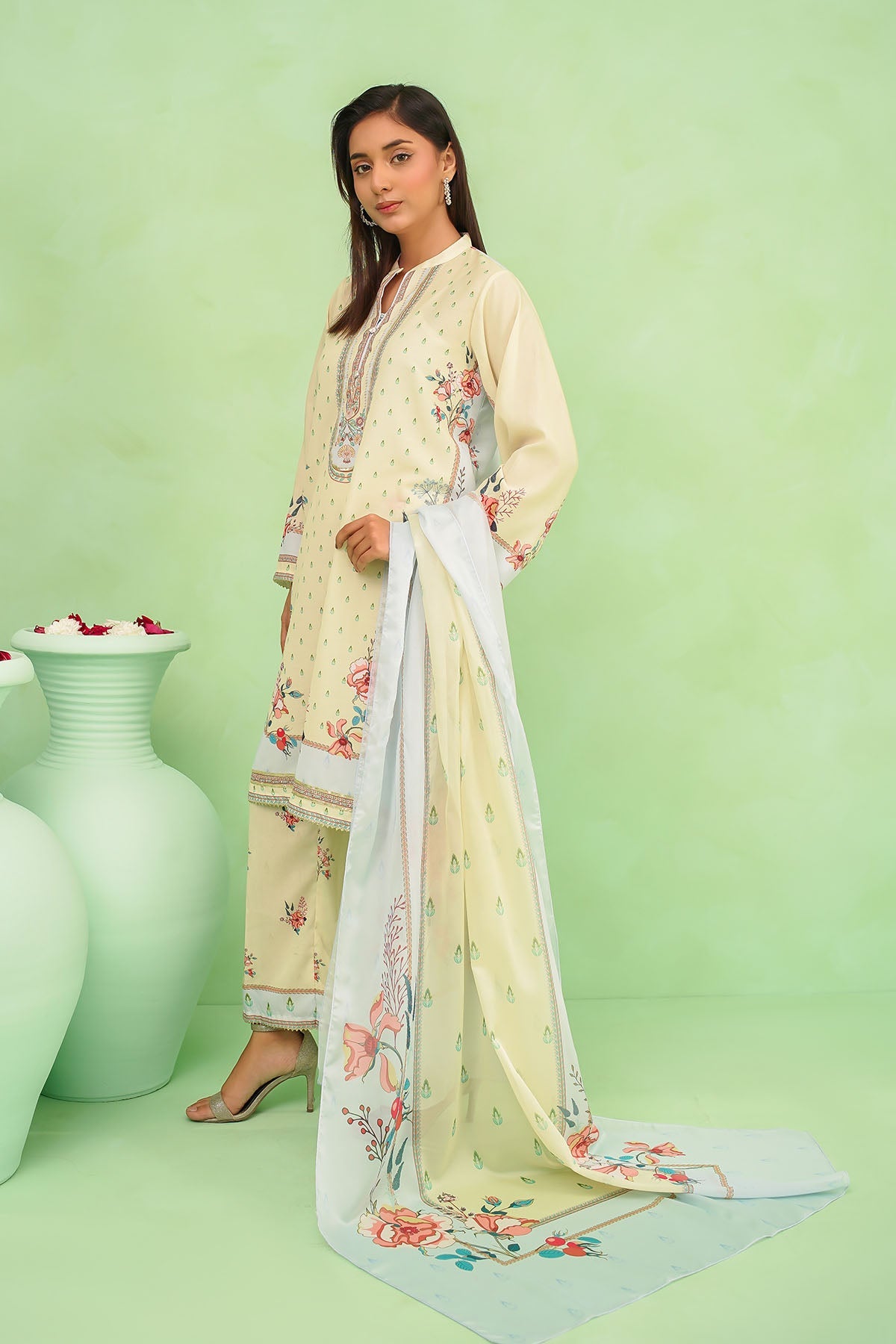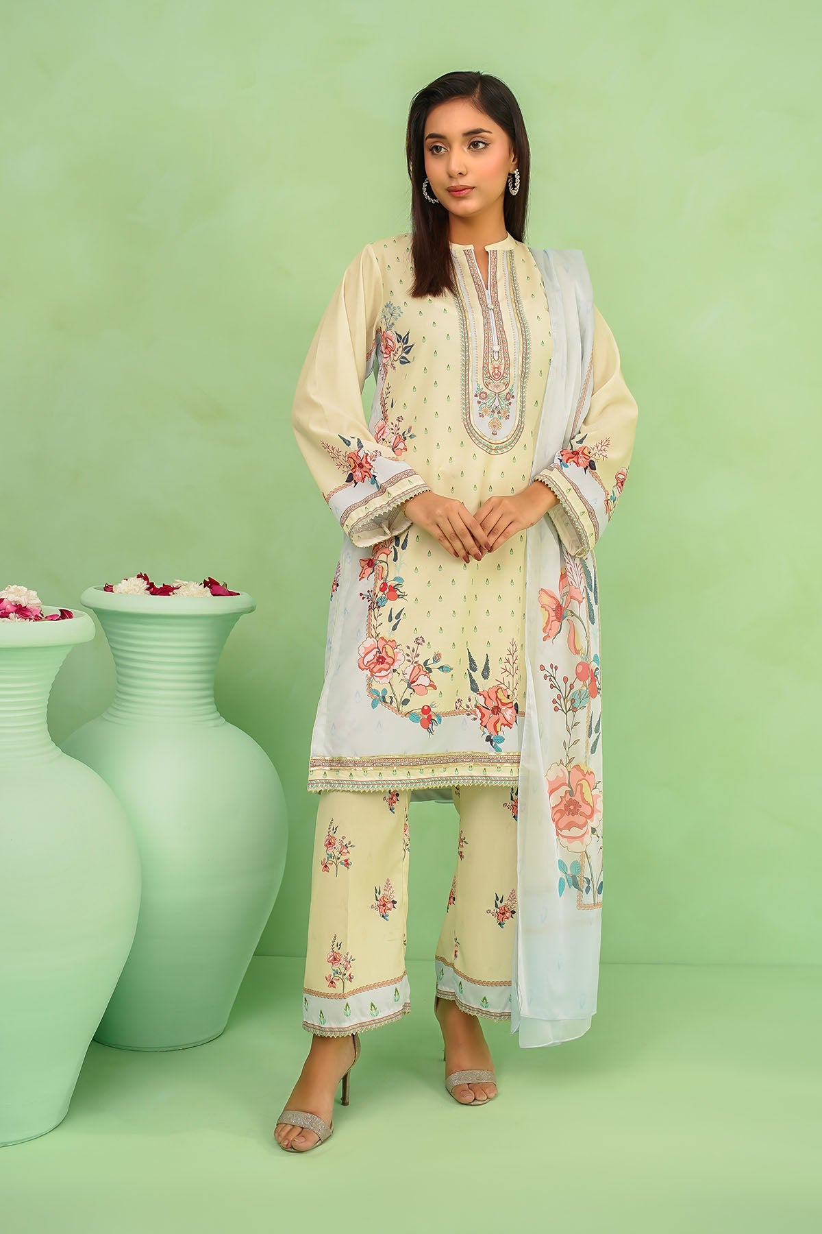 Bottom: Lemon Yellow Poly Lawn Digital Printed Trouser