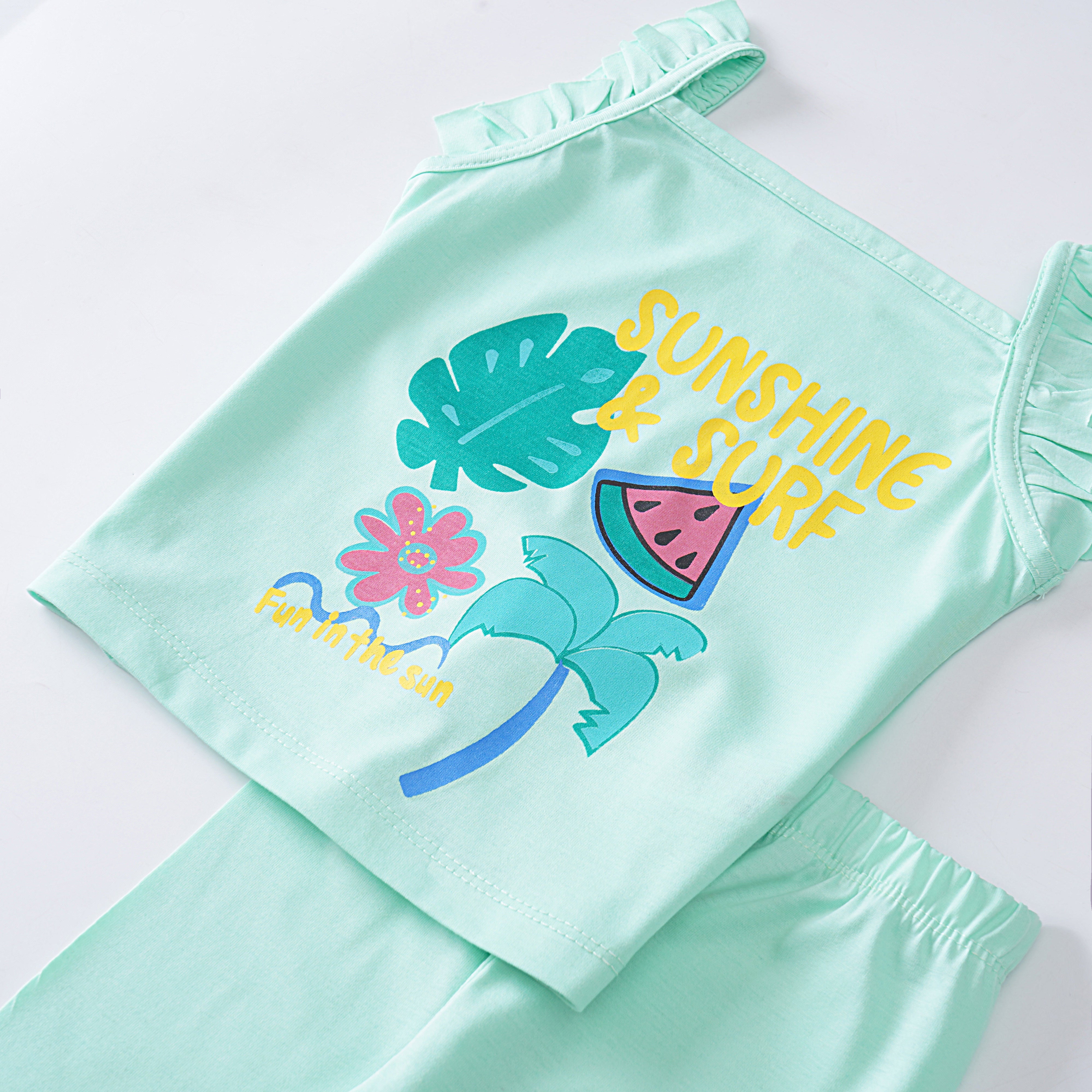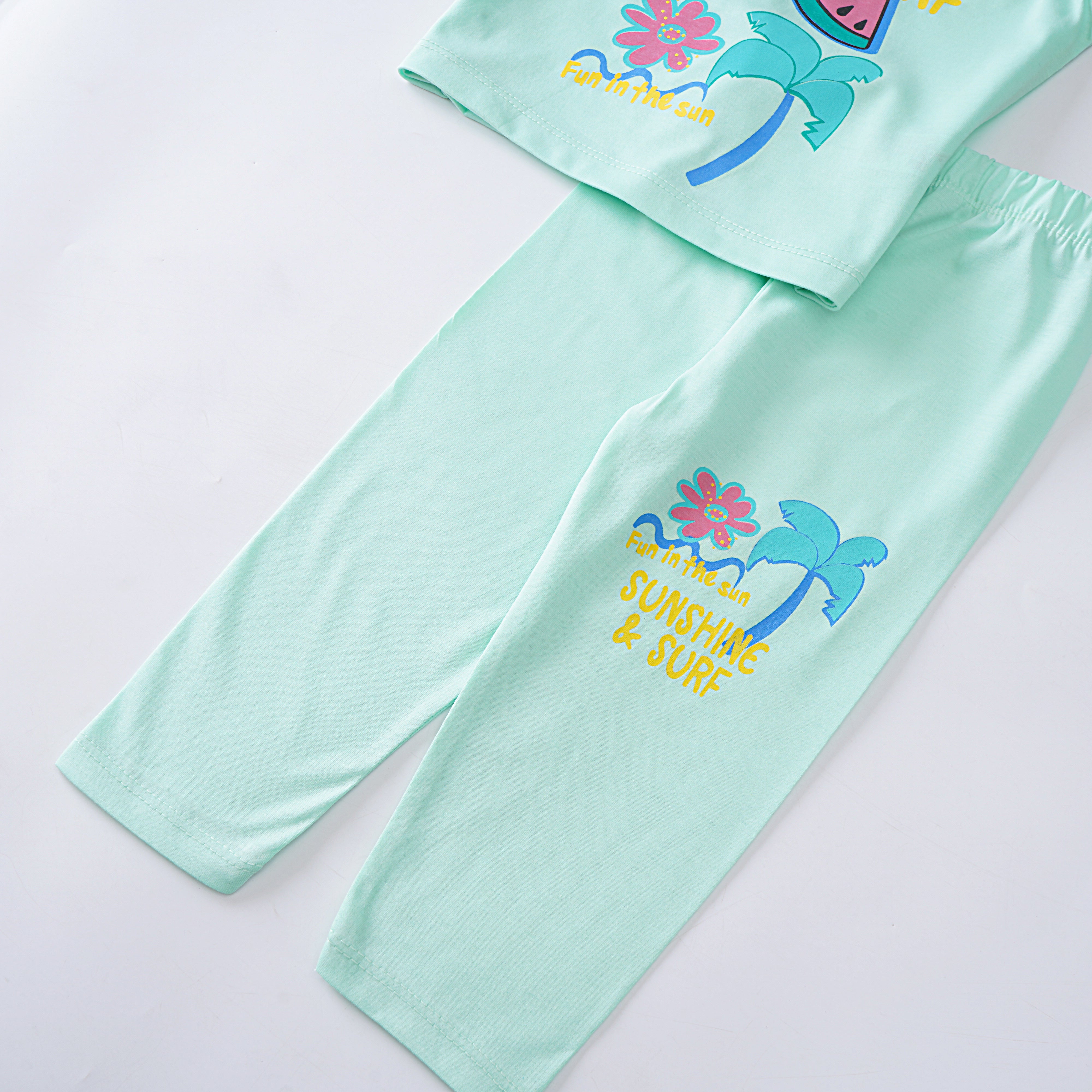 The top features a classic cut with short sleeves and a round neckline for easy wear and movement. Paired with matching bottoms, complete with an elastic waistband for a snug fit that allows for unrestricted play.