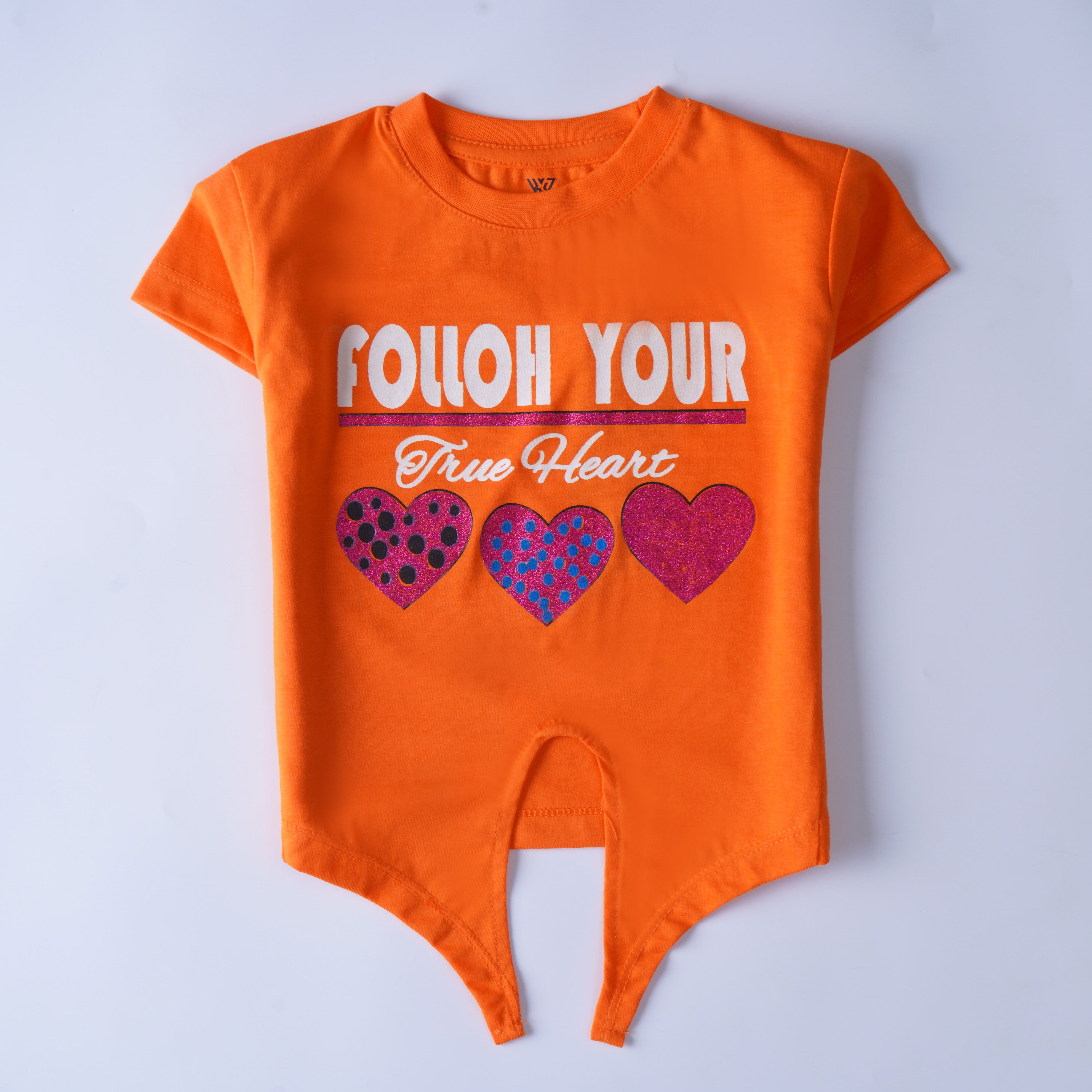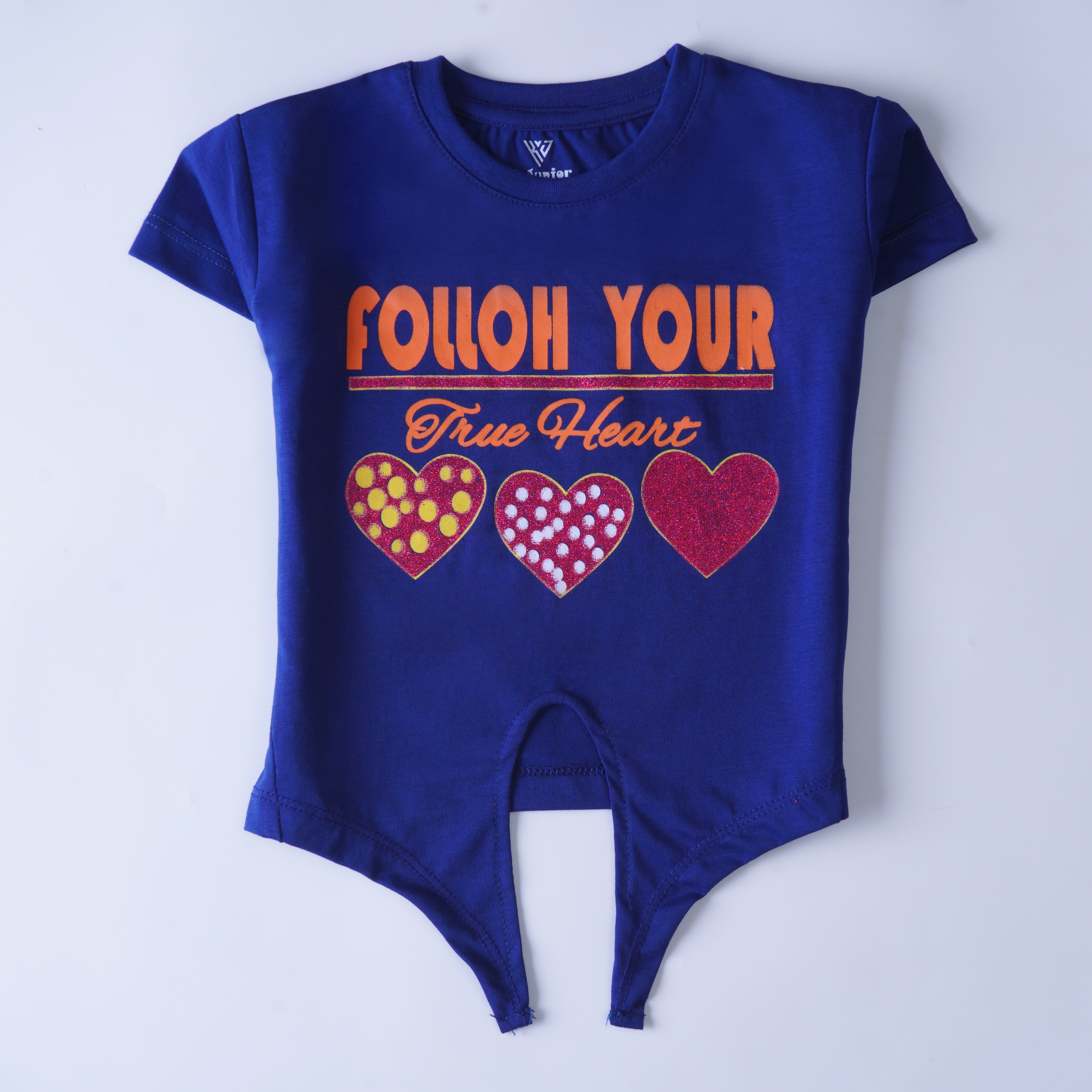 Introducing our delightful Girls' Printed T-shirt, a charming addition to any young fashionista's wardrobe! Crafted from a premium cotton jersey blend fabric, this tee ensures both comfort and durability for all-day wear.