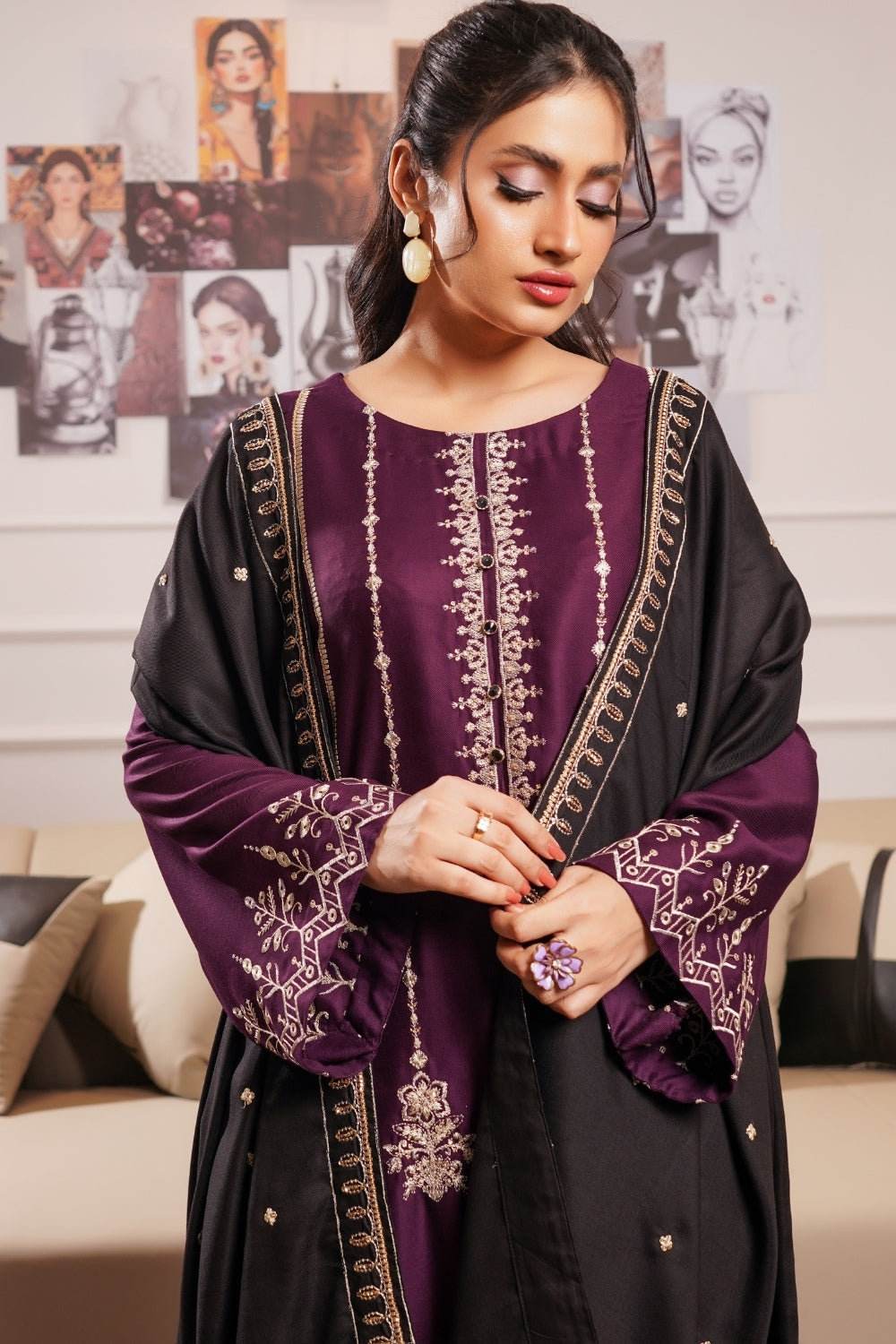 EMBROIDERED TWILL SHAWL