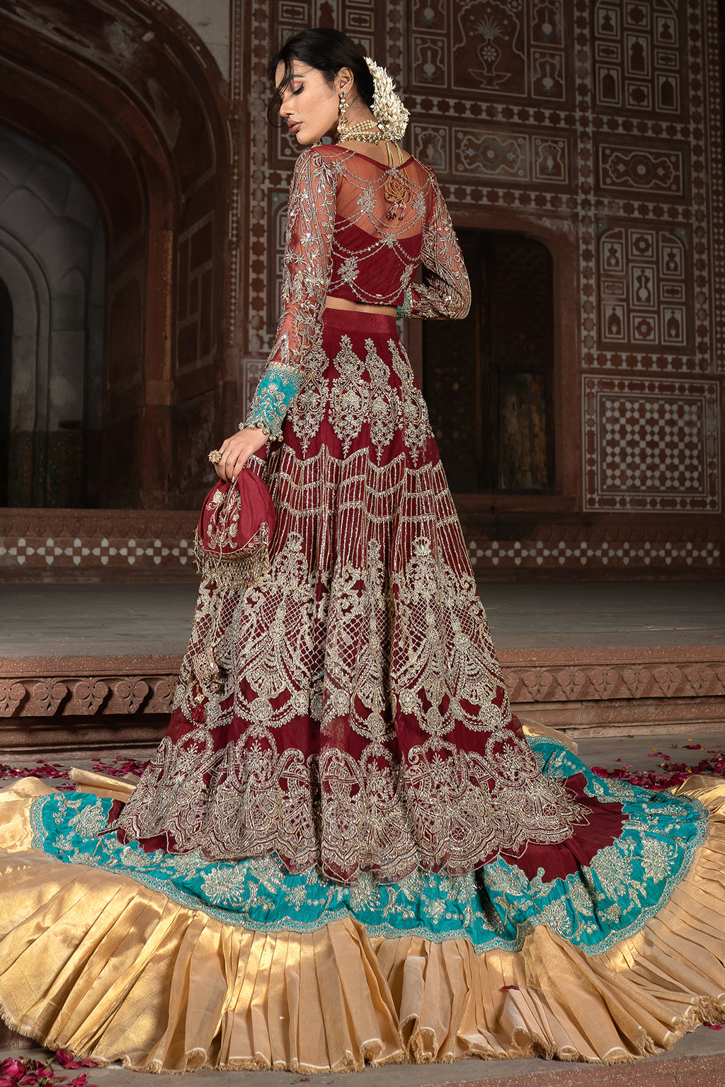 • Embroidered net front body embellished with adda work (26”)