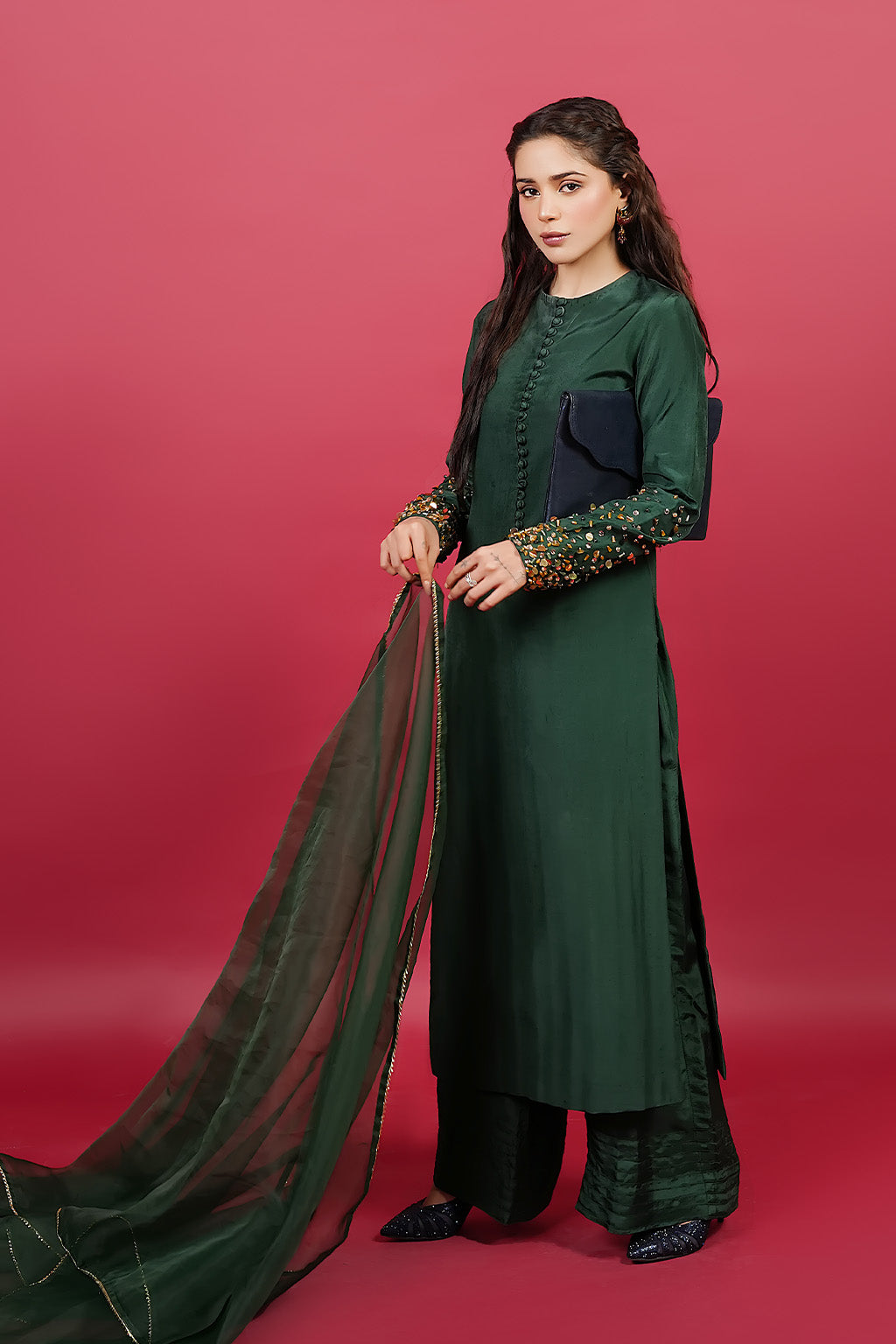 Bin Saeed Stitched 3 Piece Exclusive Printed Lawn Vol-05 Collection-SM-1618-Ferozi