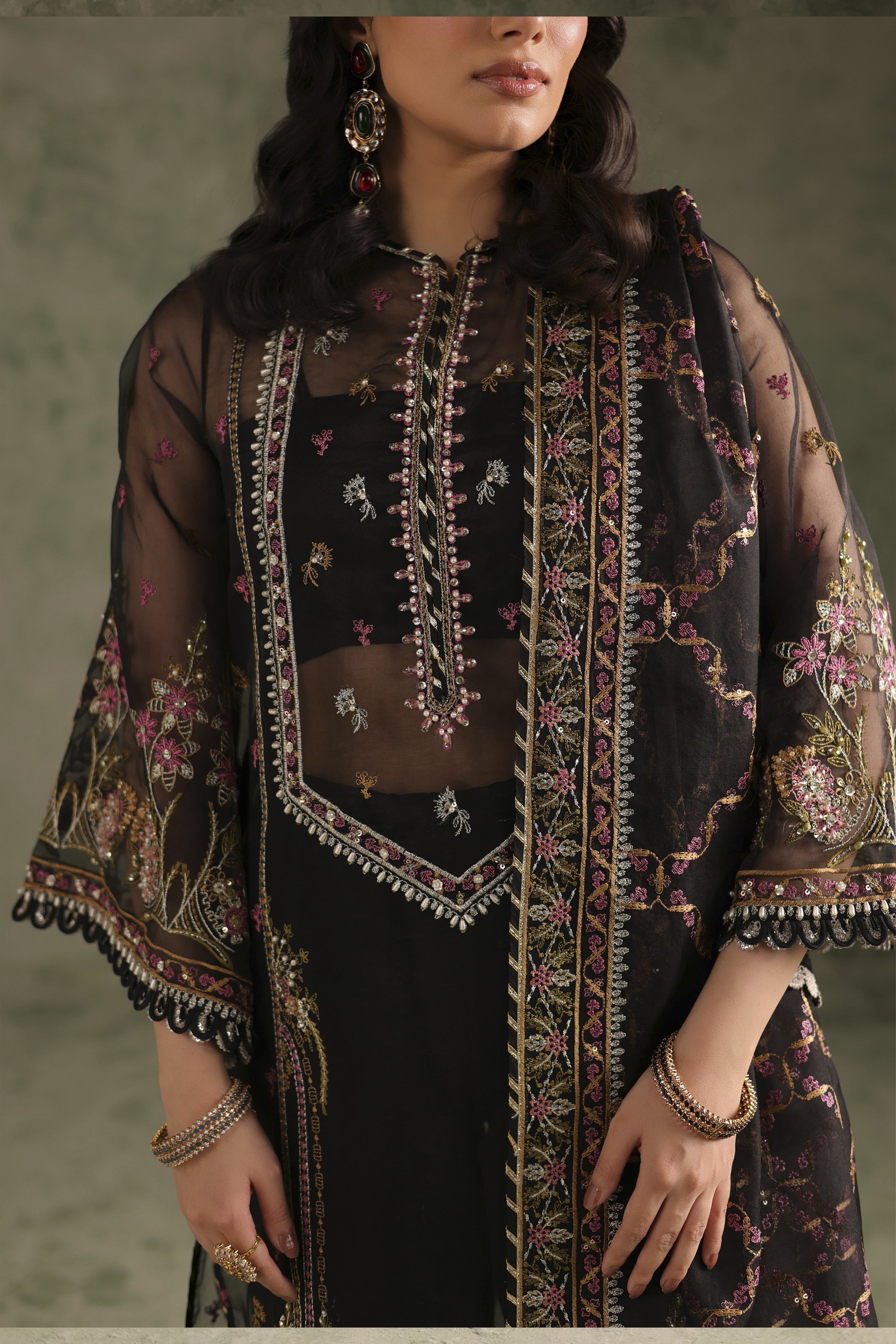 Paired with a 2.75-yard embroidered organza dupatta and dyed raw silk trousers with lining (5 yards), this ensemble offers the perfect balance of luxury, comfort, and elegance