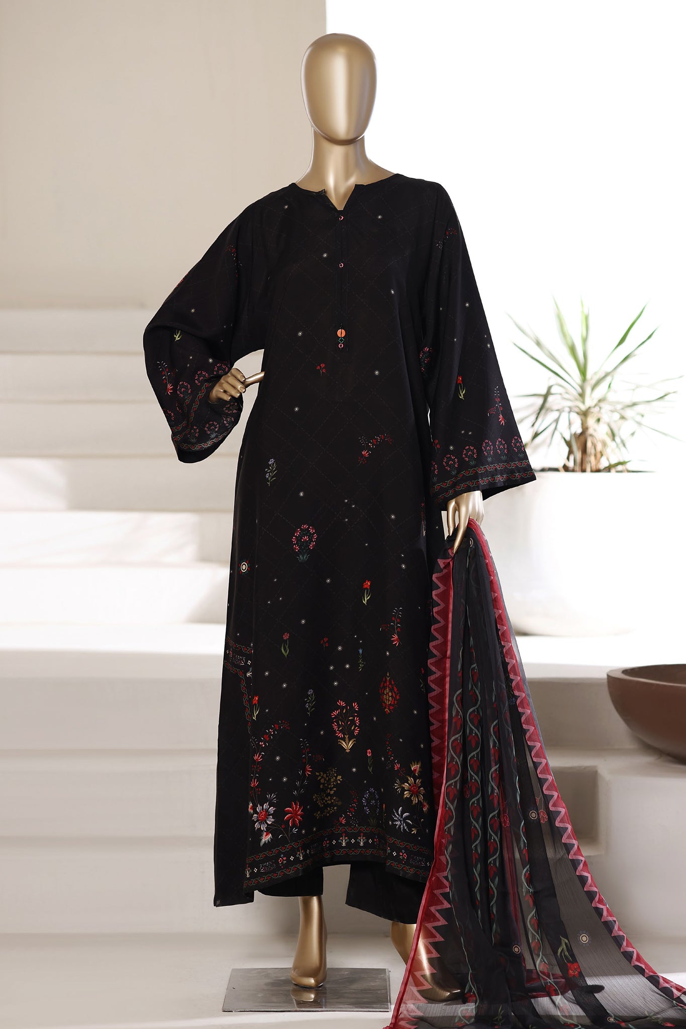 Sada Bahar Stitched 3 Piece Summer Kaftaan Suit-PR-721 BLACK