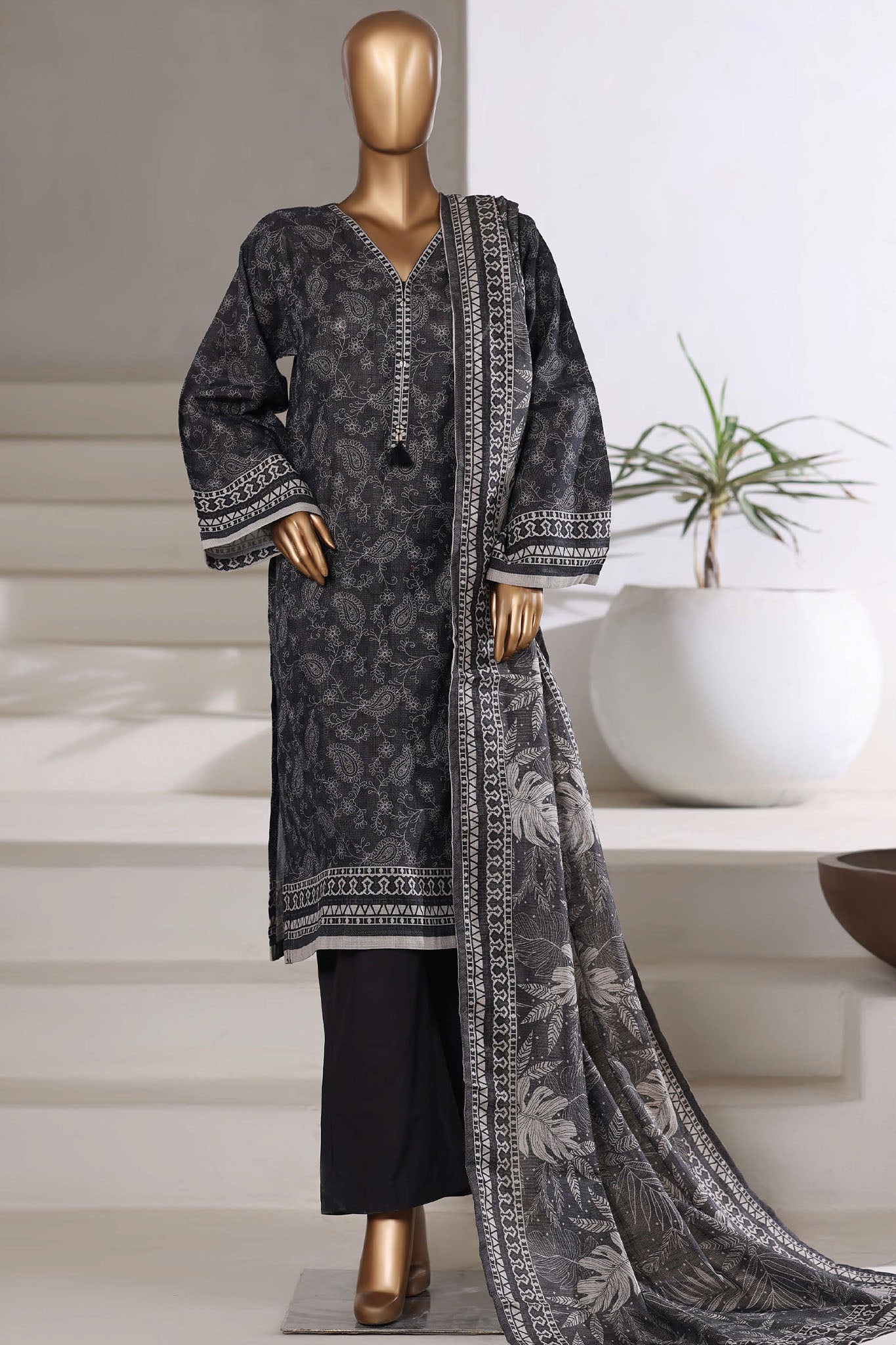 Sada Bahar Stitched 3 Piece Khaddar With Shimmer Collection'2025-KD-PR-7548-Black