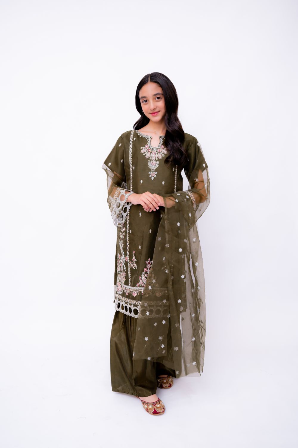 • 3 - Piece Embroidered Shirt, Dupatta and gharara