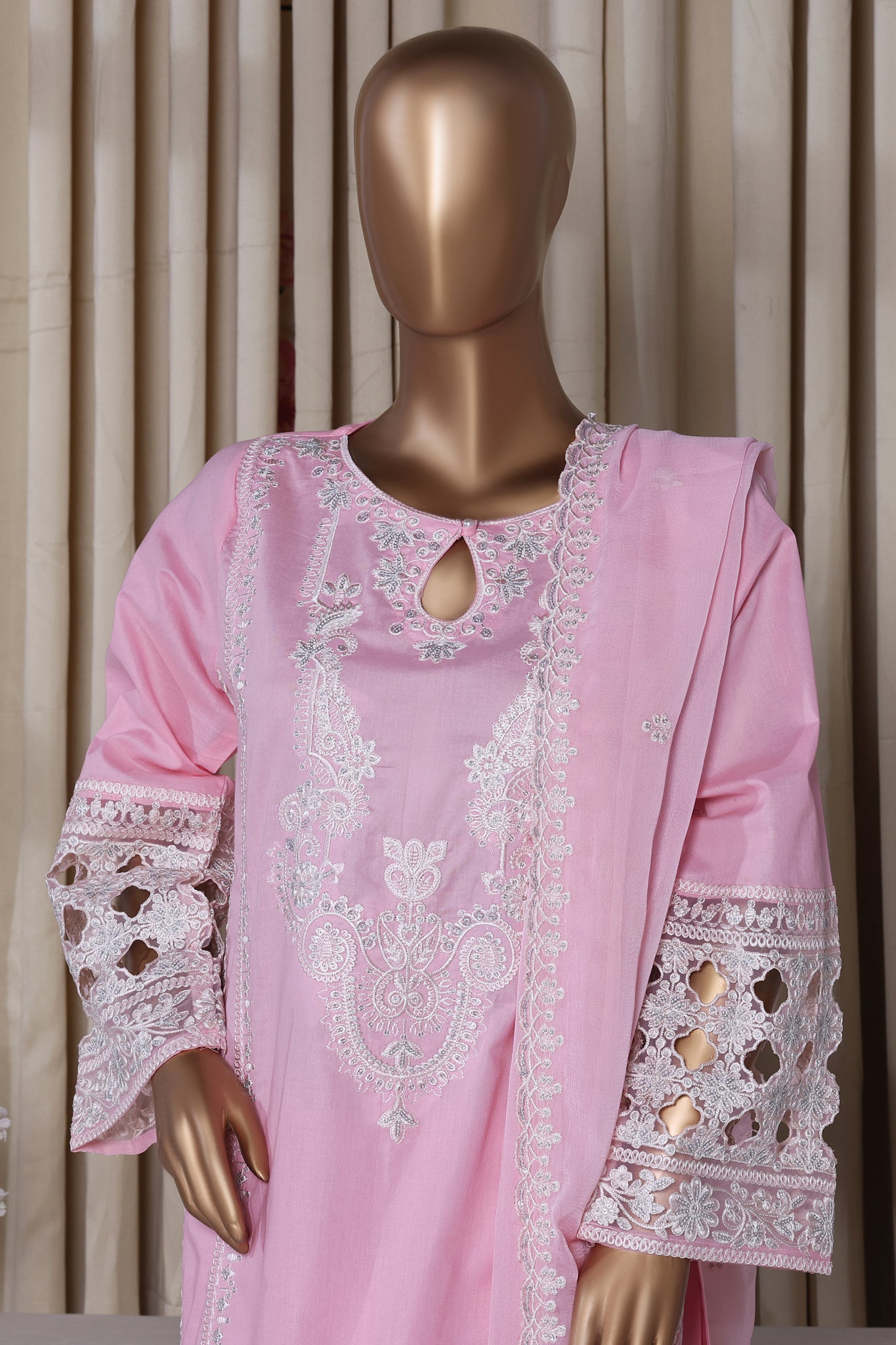 Khombi Stitched 3 Piece Casual Pret Cotton Suit-Ice Berg-208 Pink