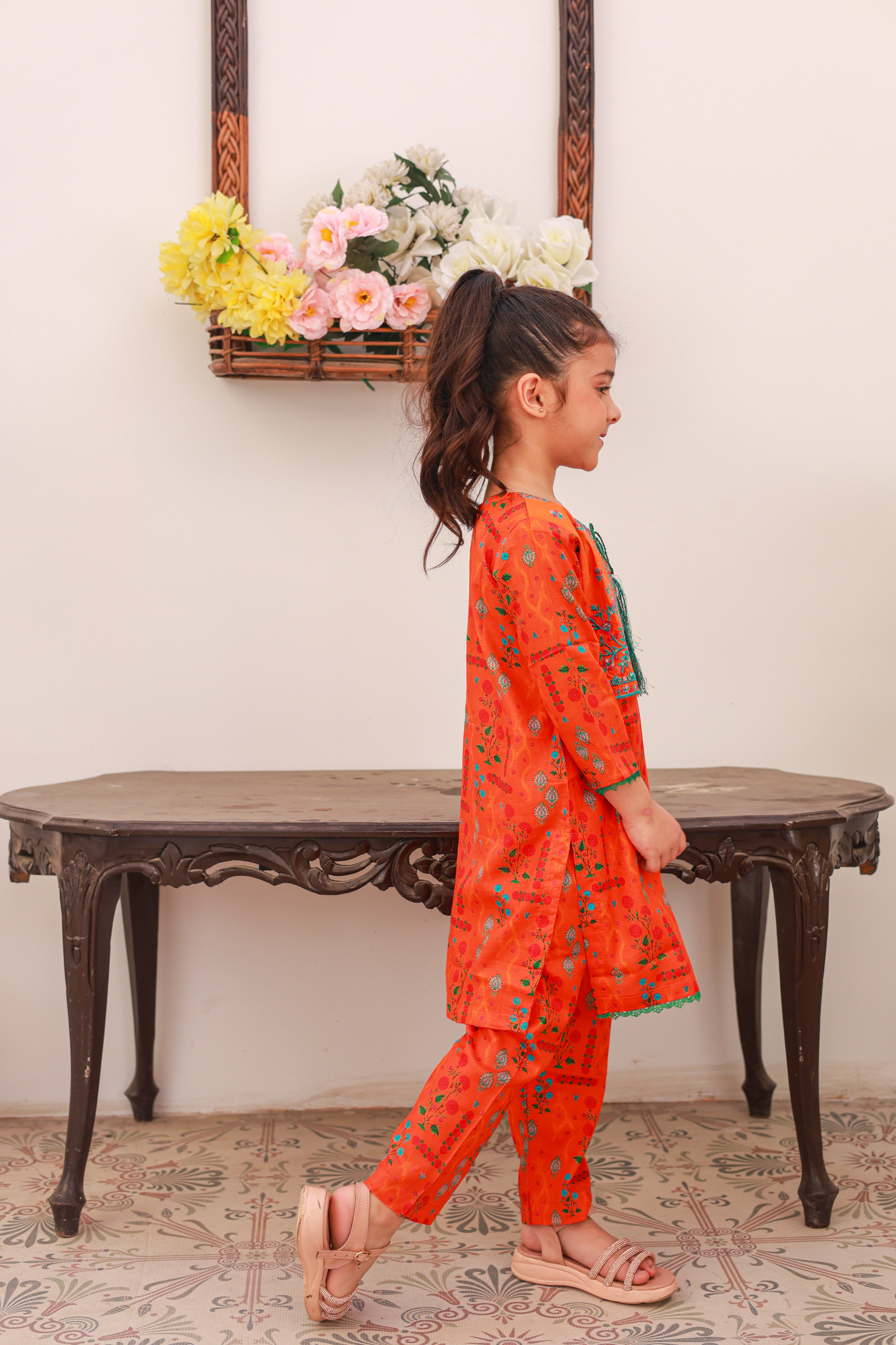 Enhance your child's wardrobe with Khanak's Printed and Embroided Lawn Stitched 2-Piece set. This stylish ensemble includes a digitally printed shirt and cozy trousers, making it the ideal choice for casual outings or fun-filled adventures.