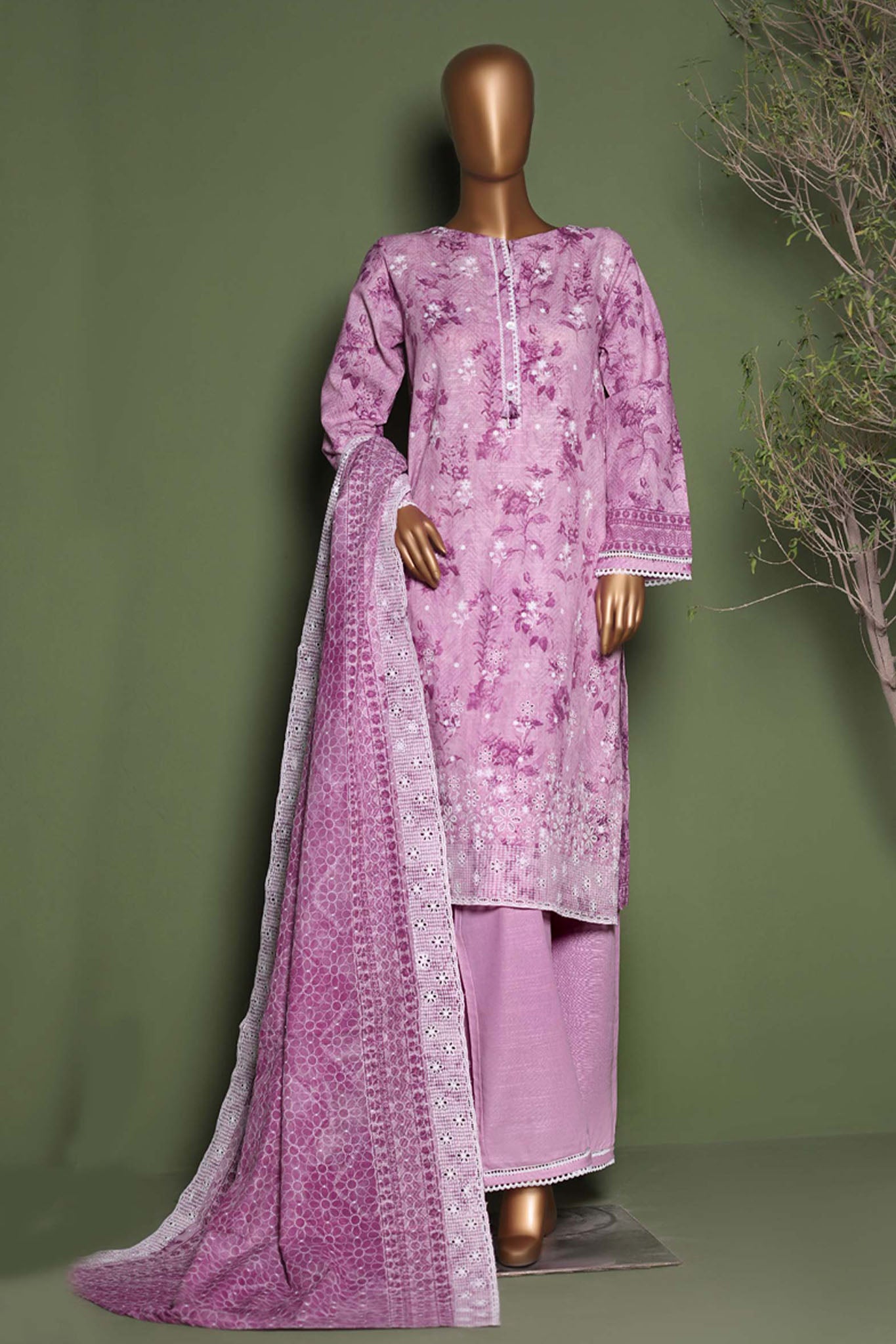 HZ Stitched 3 Piece Emb Printkari Khaddar Collection'2025-KPS-2543-Lavender