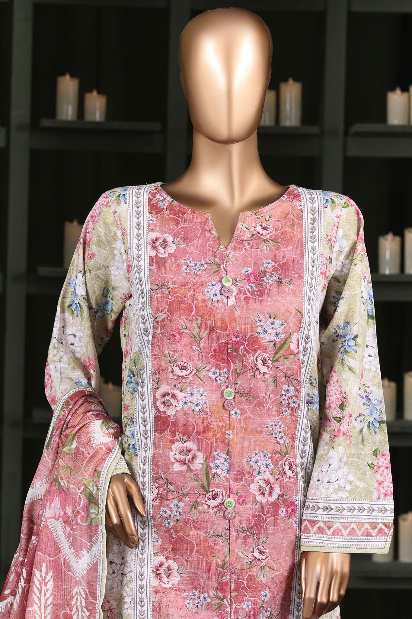 Hz Stitched 3 Piece Digital Printed Khaddar Vol-03 Collection'2025-KPT-2571-Peach