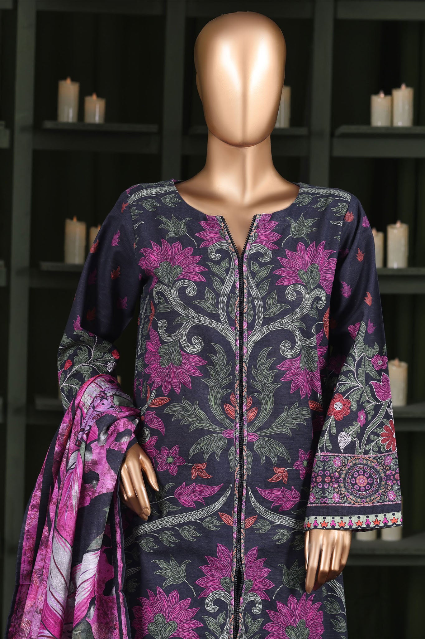Hz Stitched 3 Piece Digital Printed Khaddar Vol-03 Collection'2025-KPT-2574-Black