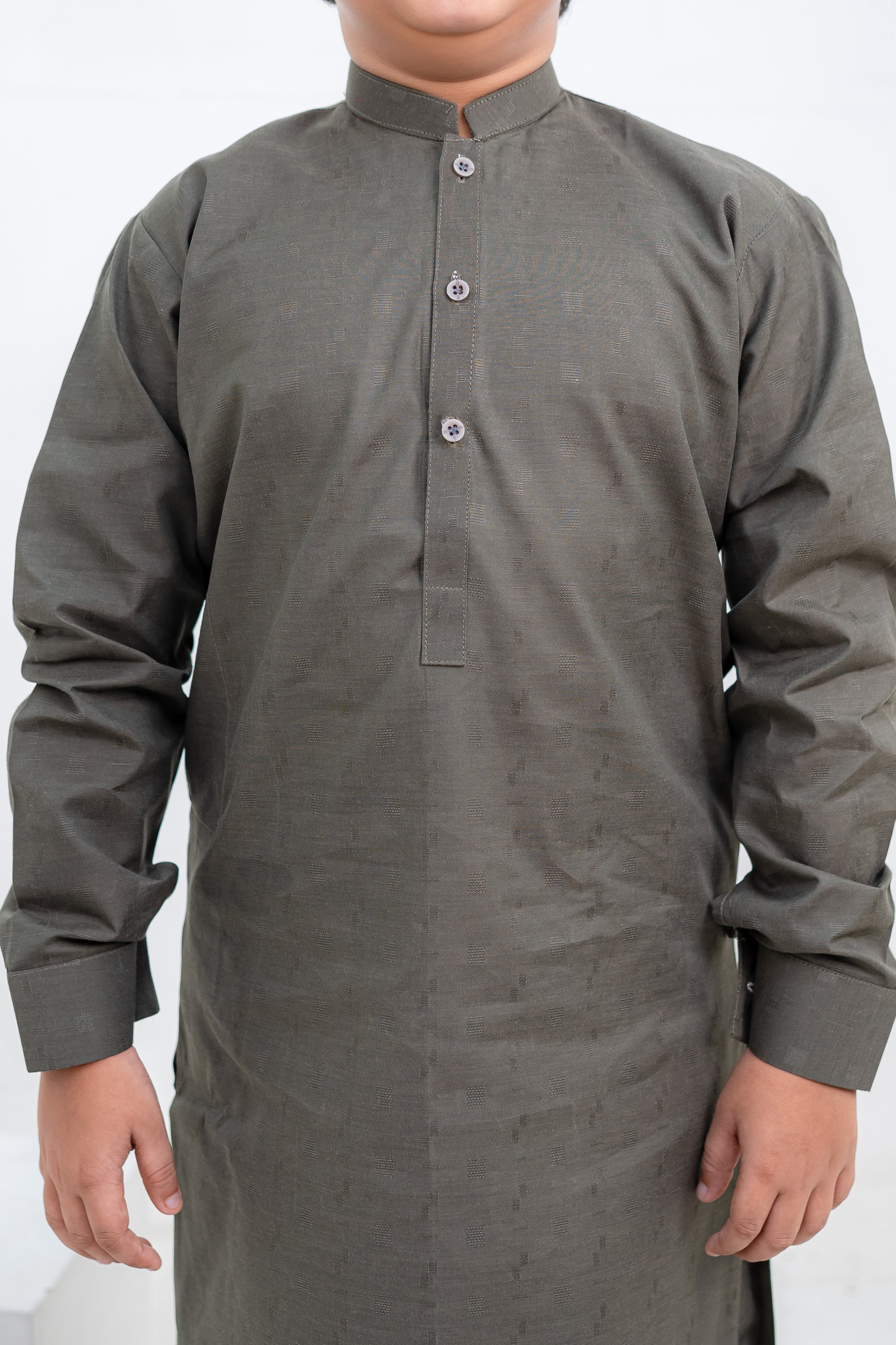 This exquisite Boy's Cotton Kurta Set in a sleek Grey color is perfect for daily wear. Featuring a Mandarin collar and straight trouser bottoms, this 2-piece set offers comfort and style for all seasons. The Cotton fabric ensures durability and breathability, making it a versatile addition to any wardrobe. Shop this chic Kurta Set from Wearmani today!