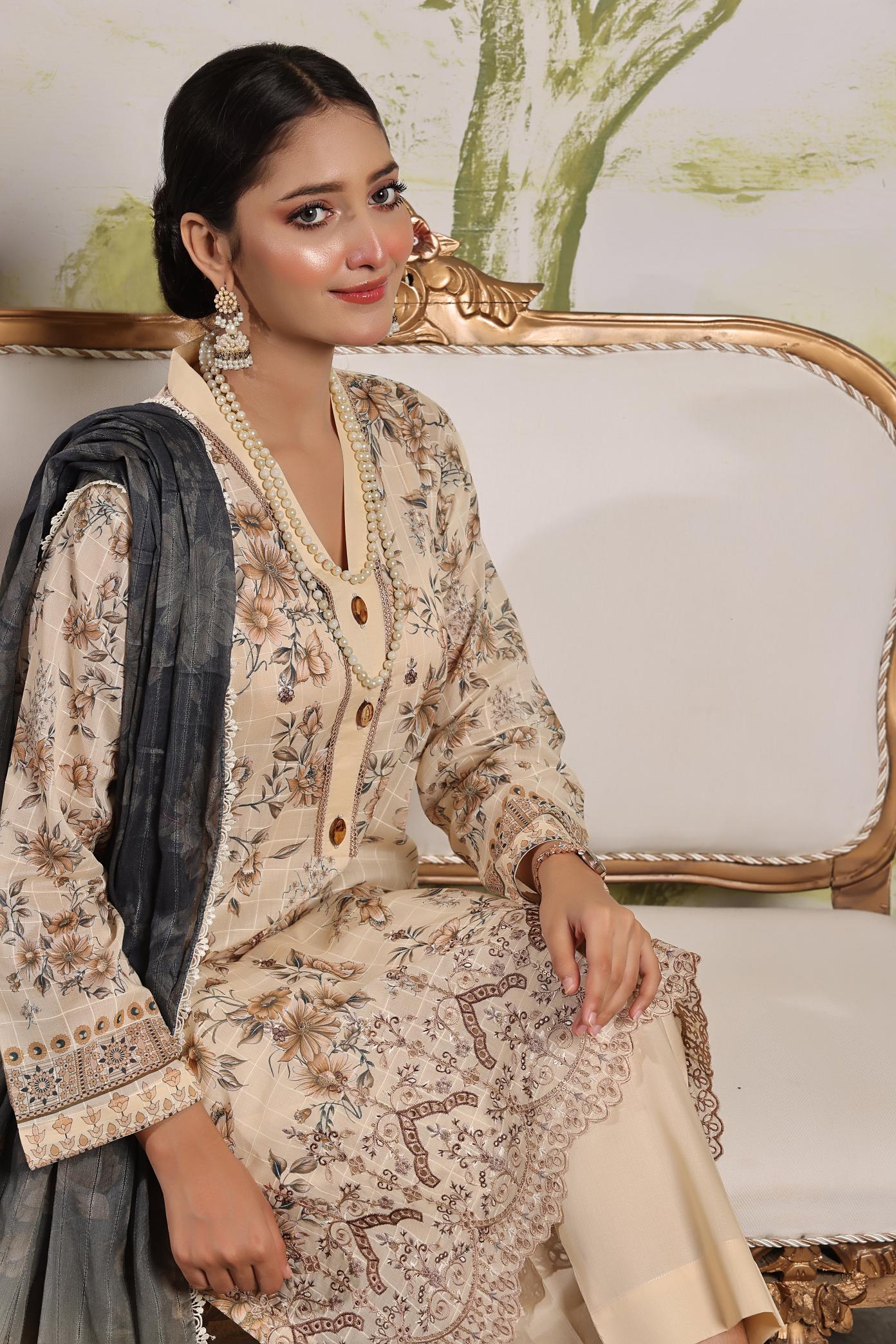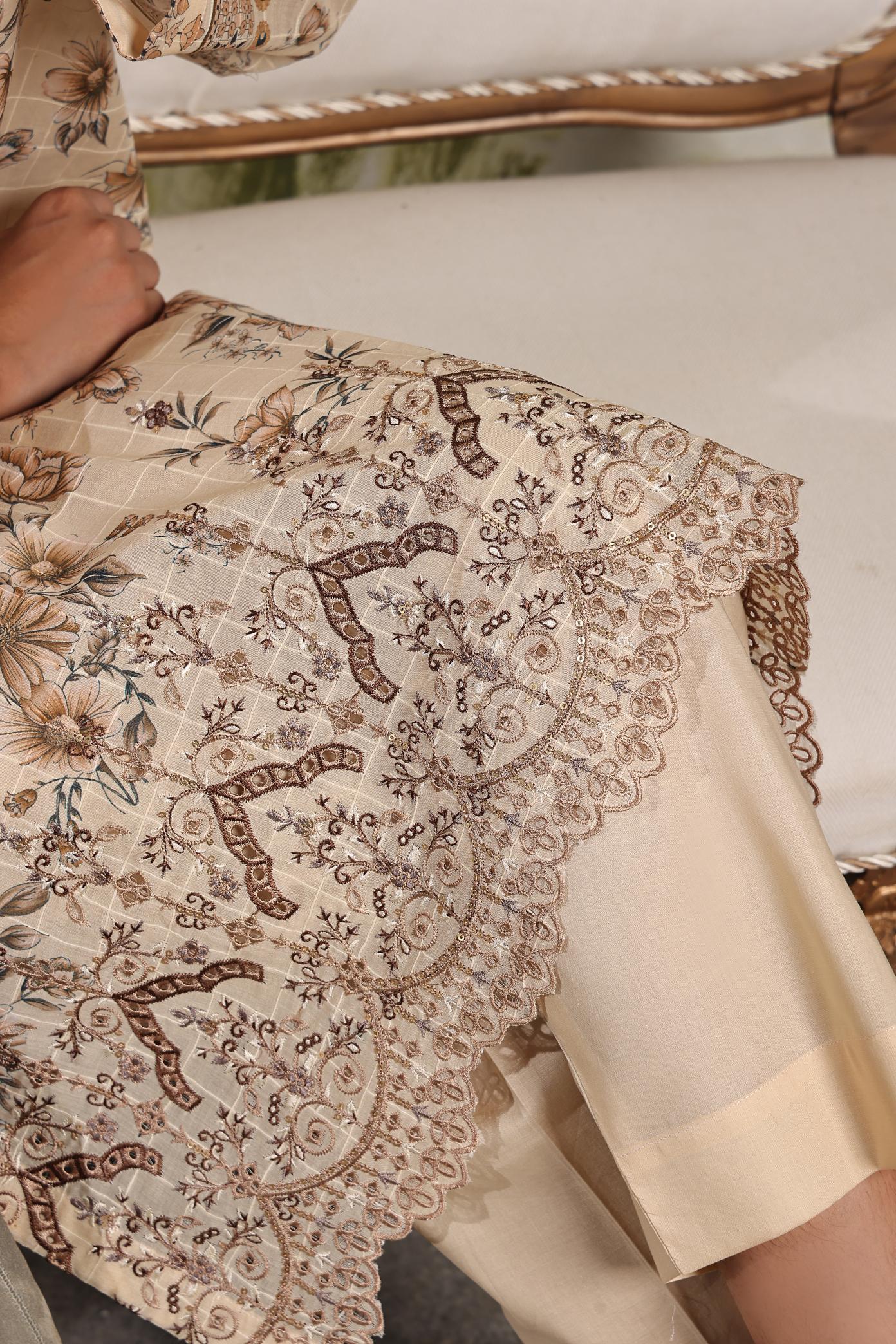 Embroidered Chikankari & LaserKari Slub Digital Printed Lawn Shirt – Featuring intricate Chikankari & LaserKari embroidery on luxurious slub lawn, complemented by a stunning digital print that adds depth and beauty to the design.