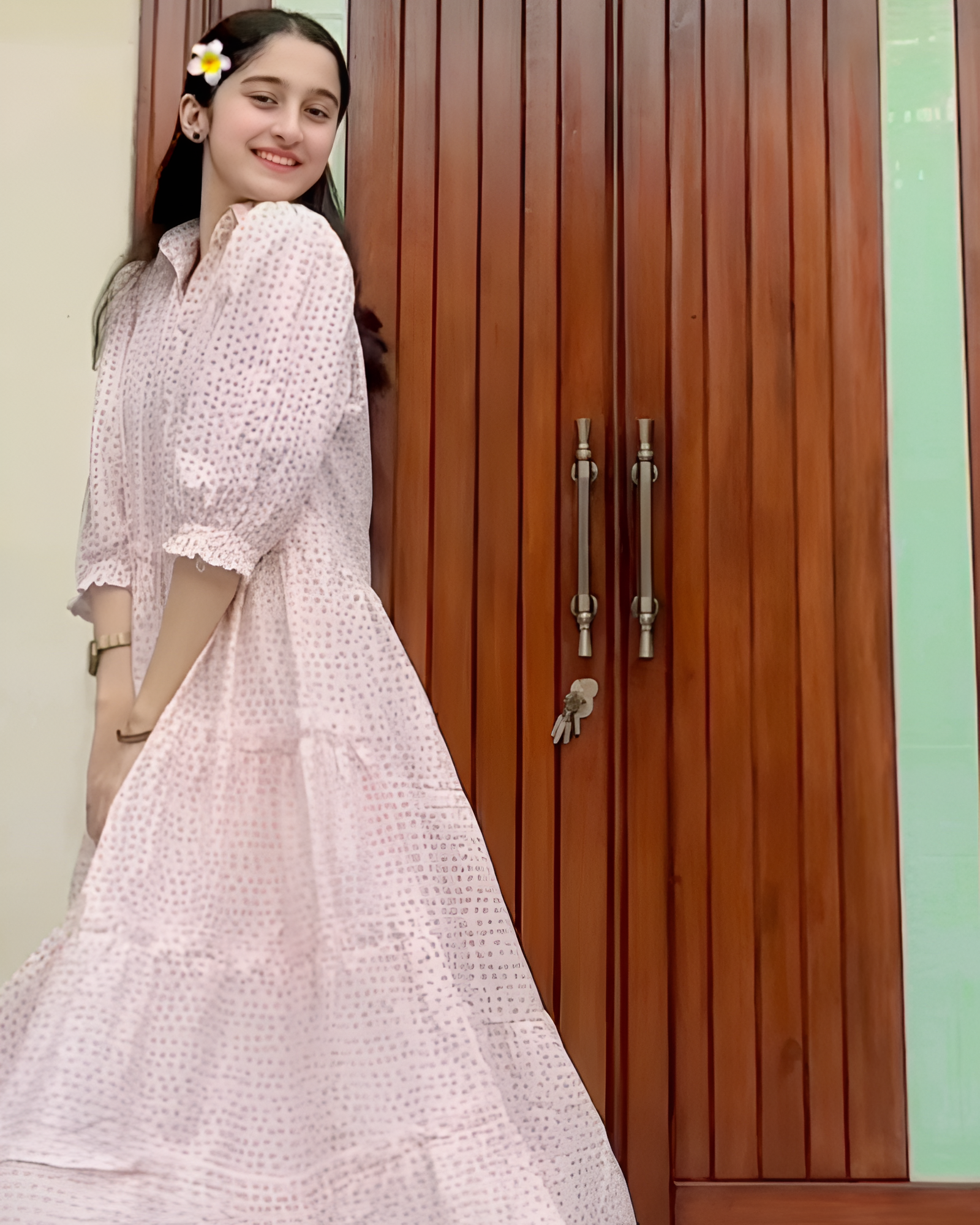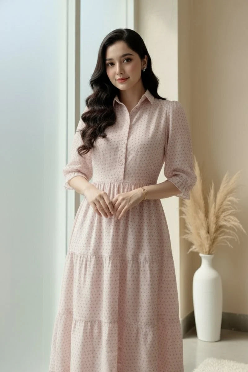 Upgrade your wardrobe with this elegant light pink cotton 1-piece maxi dress designed for effortless style and comfort. Made with breathable cotton fabric, this dress features a soft print pattern, three-quarter sleeves, and a relaxed fit – perfect for casual outings, daily wear, or summer gatherings.