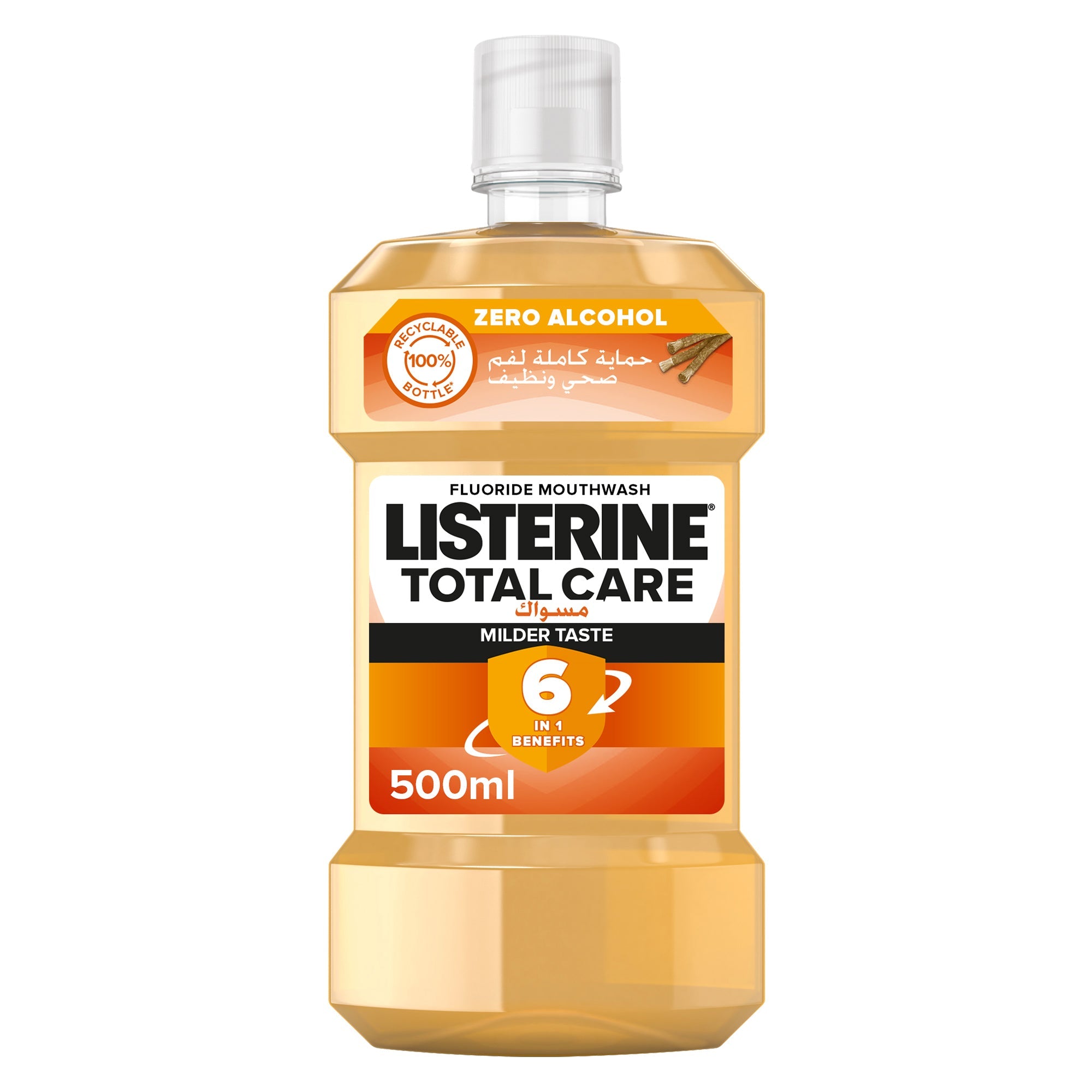 An alcohol-free mouthwash with the refreshing miswak flavor, used twice after brushing.