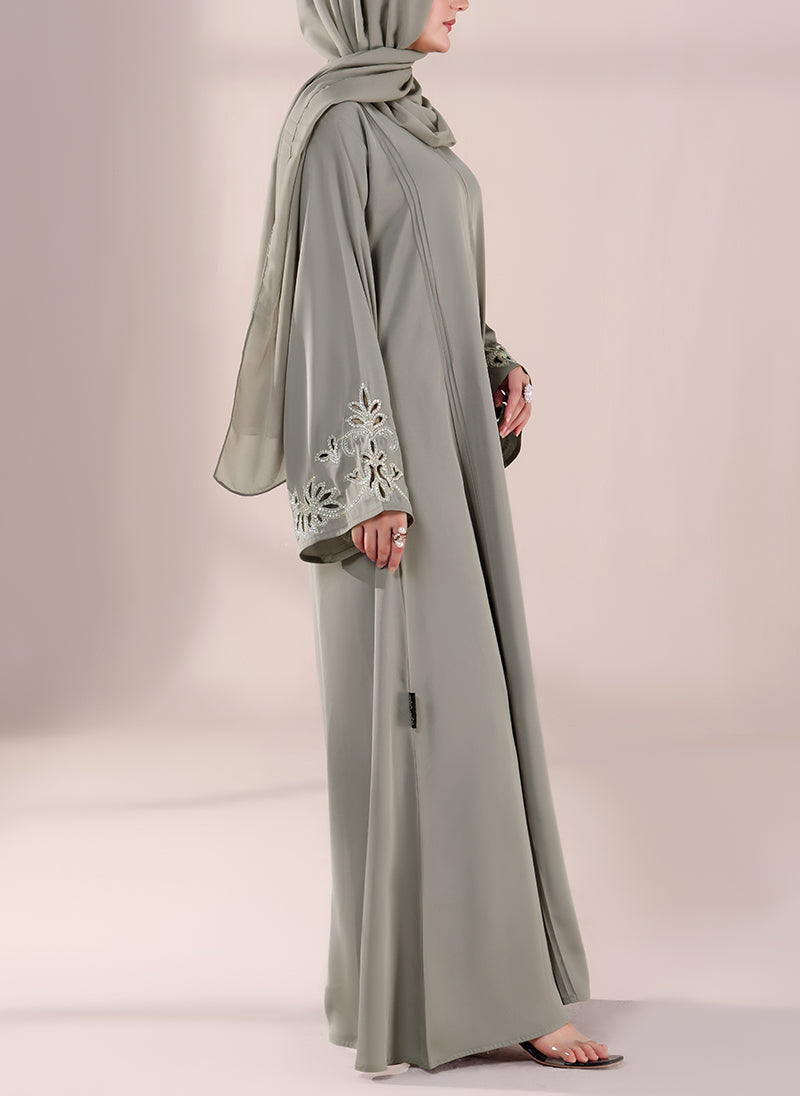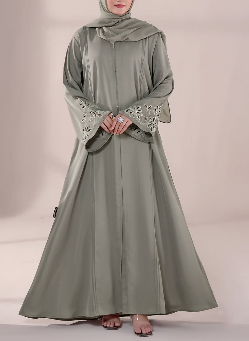 Experience timeless elegance with Hijab ul Hareem?s Handwork Nida Abaya, beautifully designed for a graceful and modest look. Made from premium Nida fabric, this abaya offers a soft, luxurious drape ? perfect for everyday wear or special occasions.
