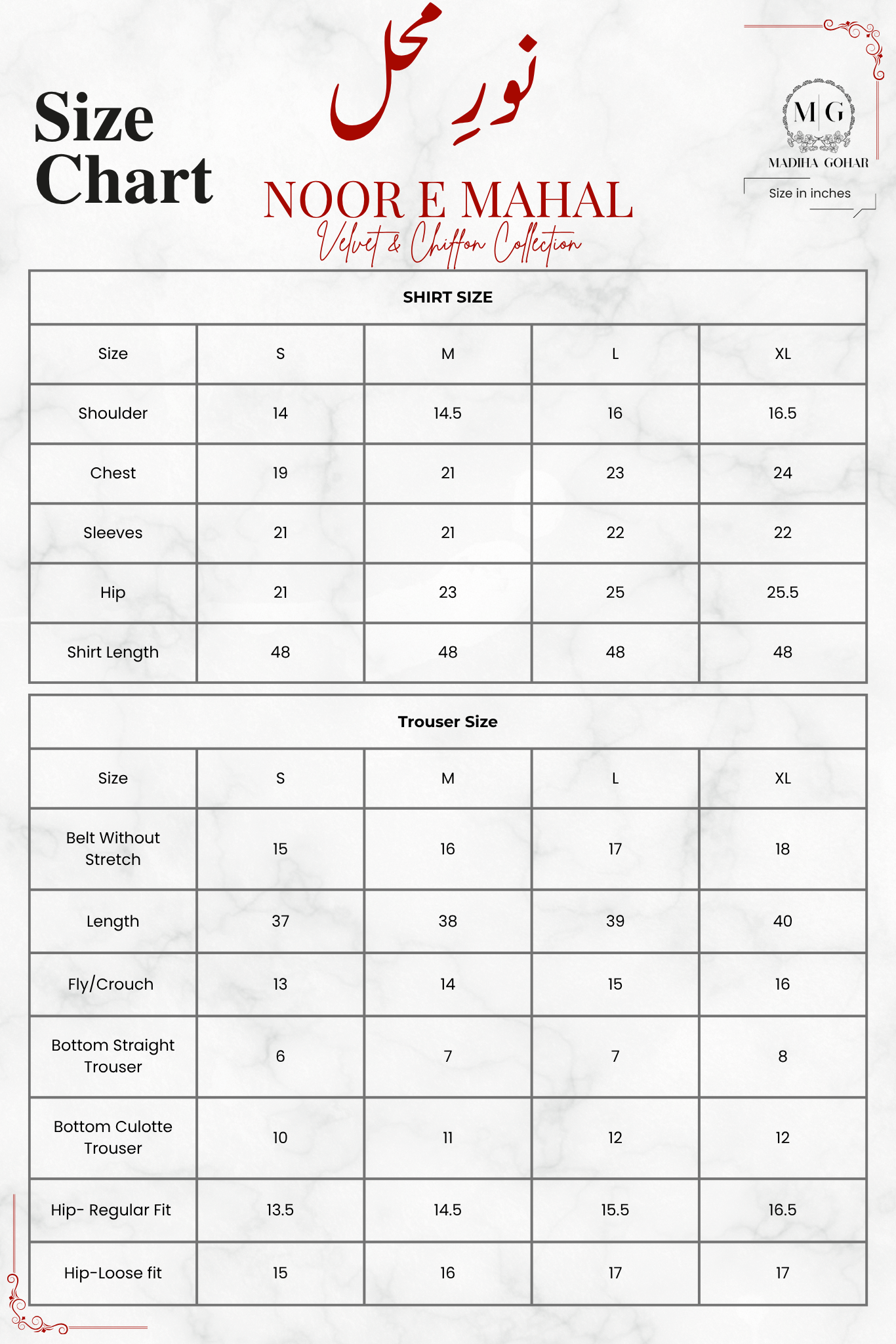 Command attention with Noor-e-Gulnaar, a regal rich plum velvet ensemble from Madiha Gohar?s Noor-e-Mahal Collection. This exquisite design embodies winter luxury with a graceful balance of bold color and delicate hand artistry.