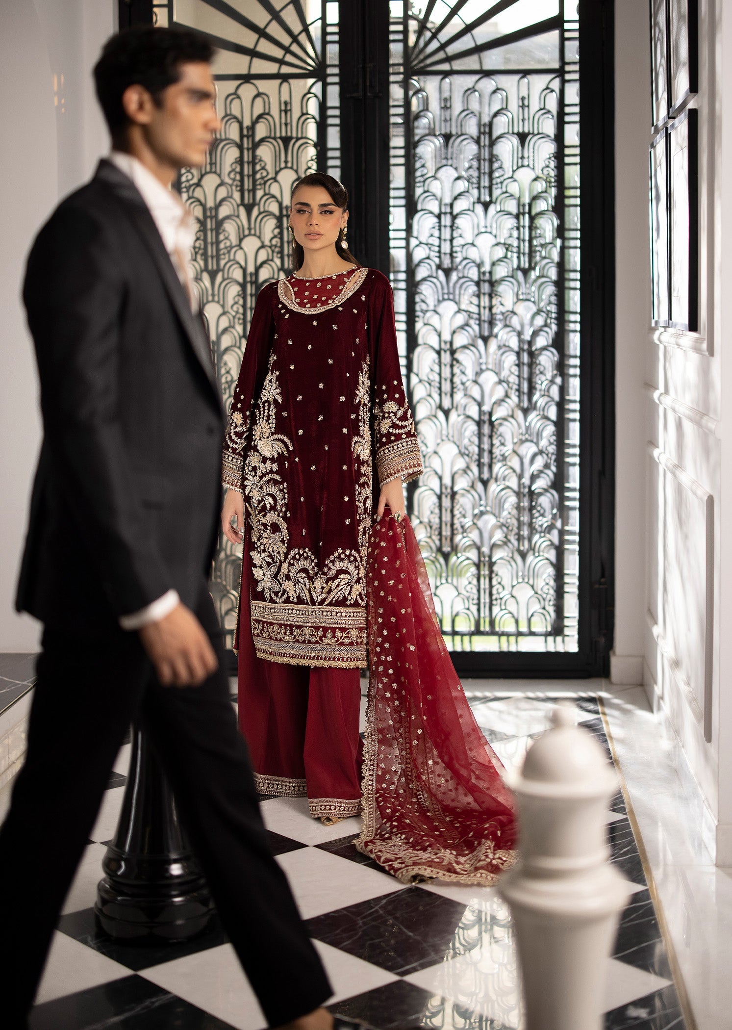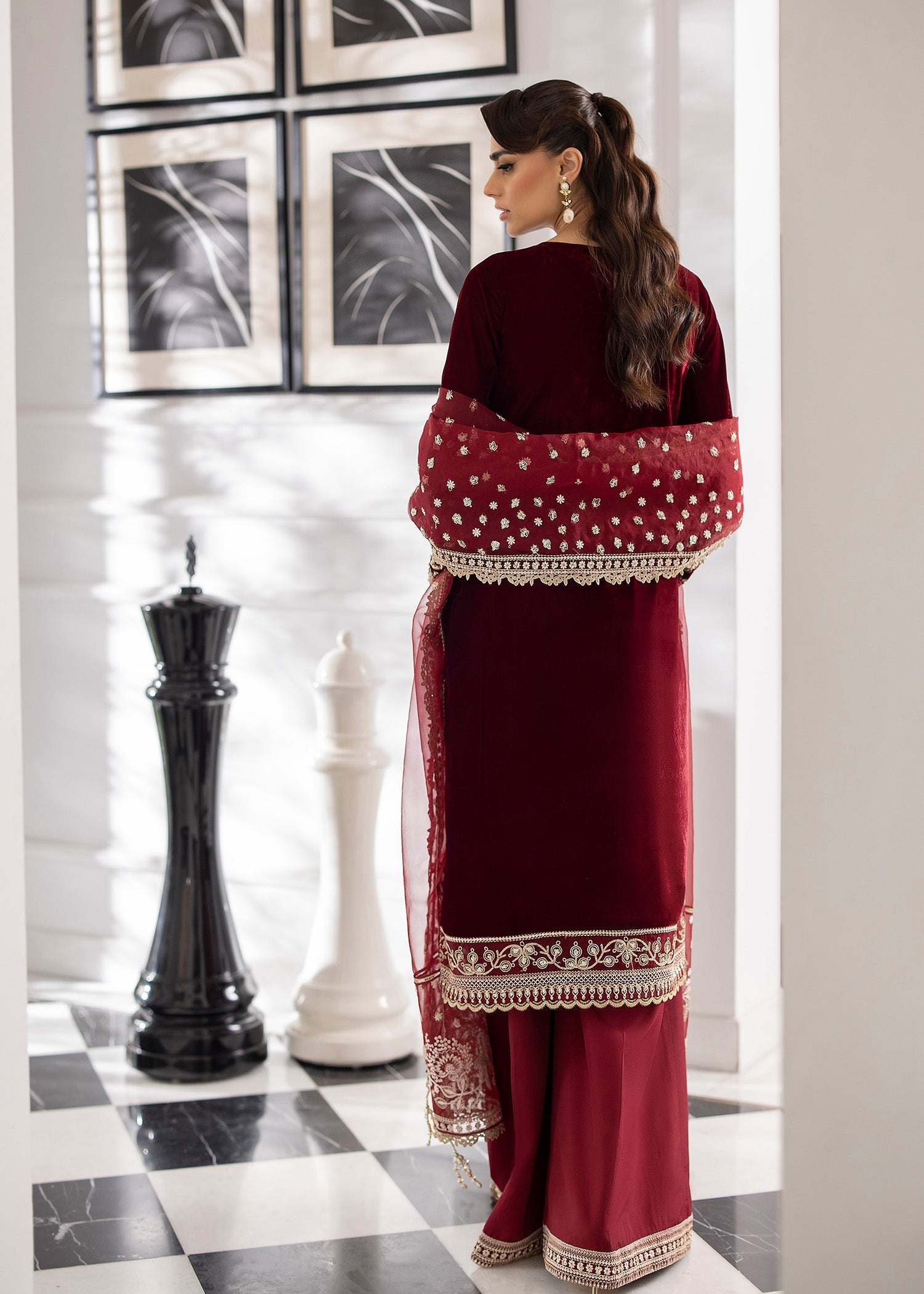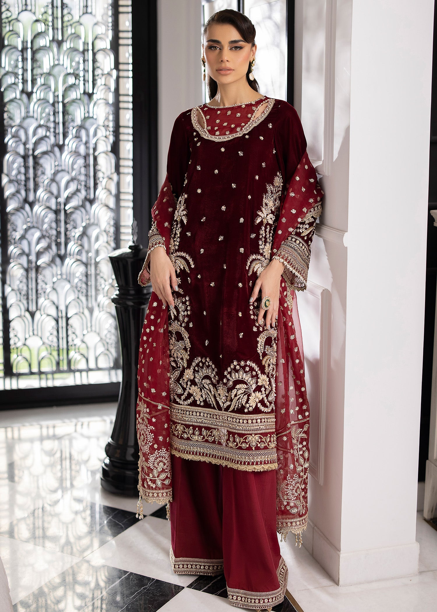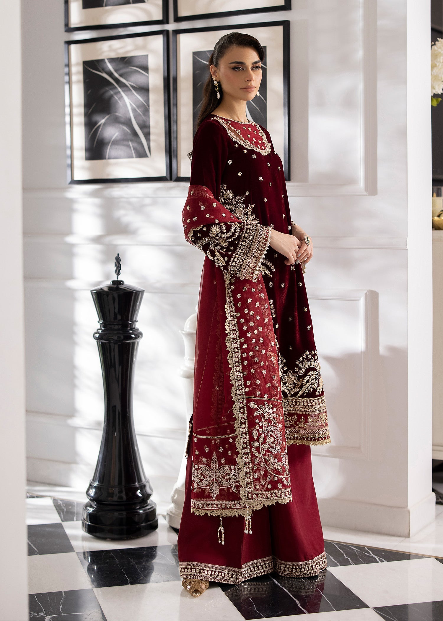 Fabric Details: Velvet Shirt, Organza Dupatta, Solid Dyed Raw Silk (2.5 yards)