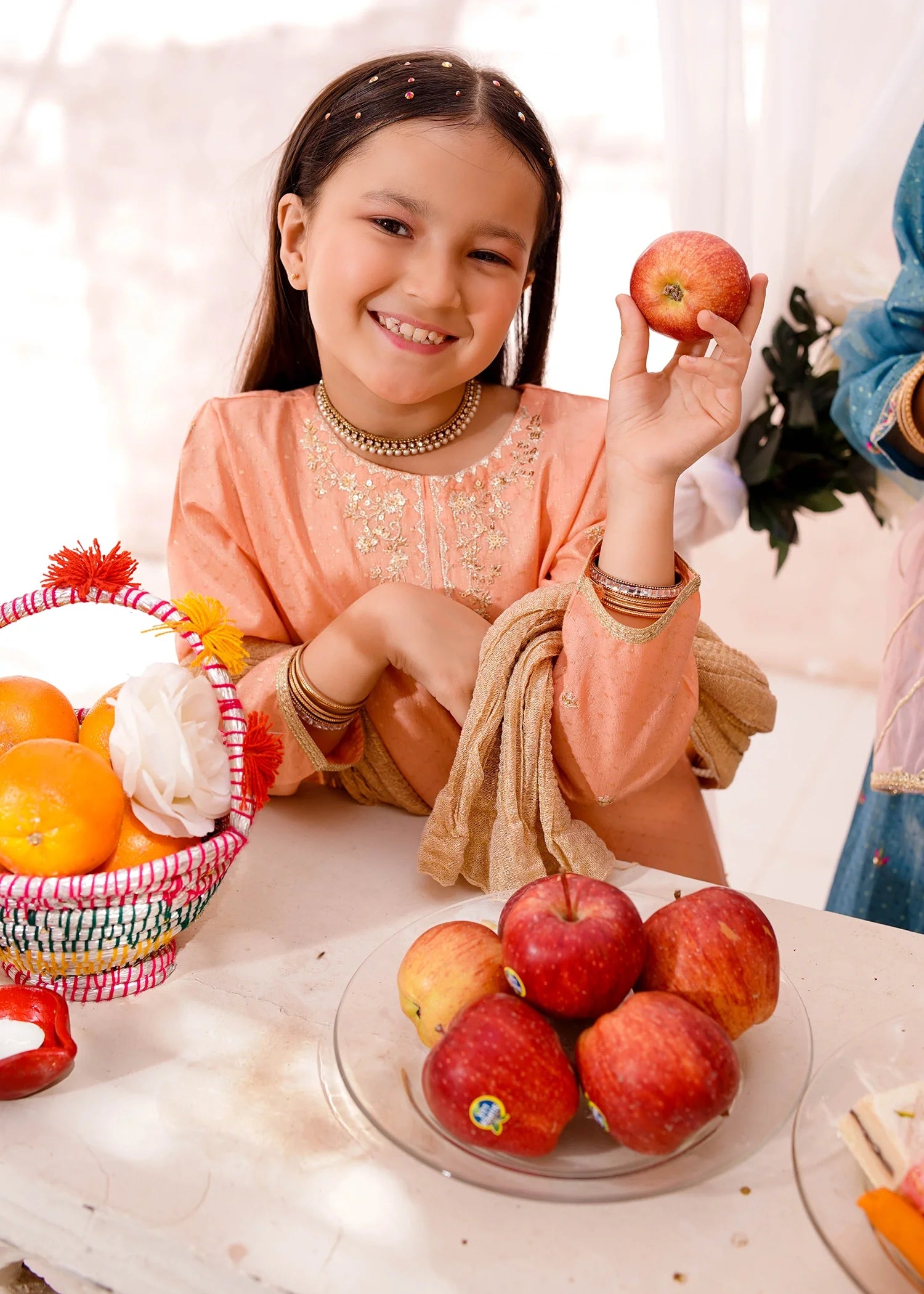 Top: Peach embroidered cotton lawn shirt