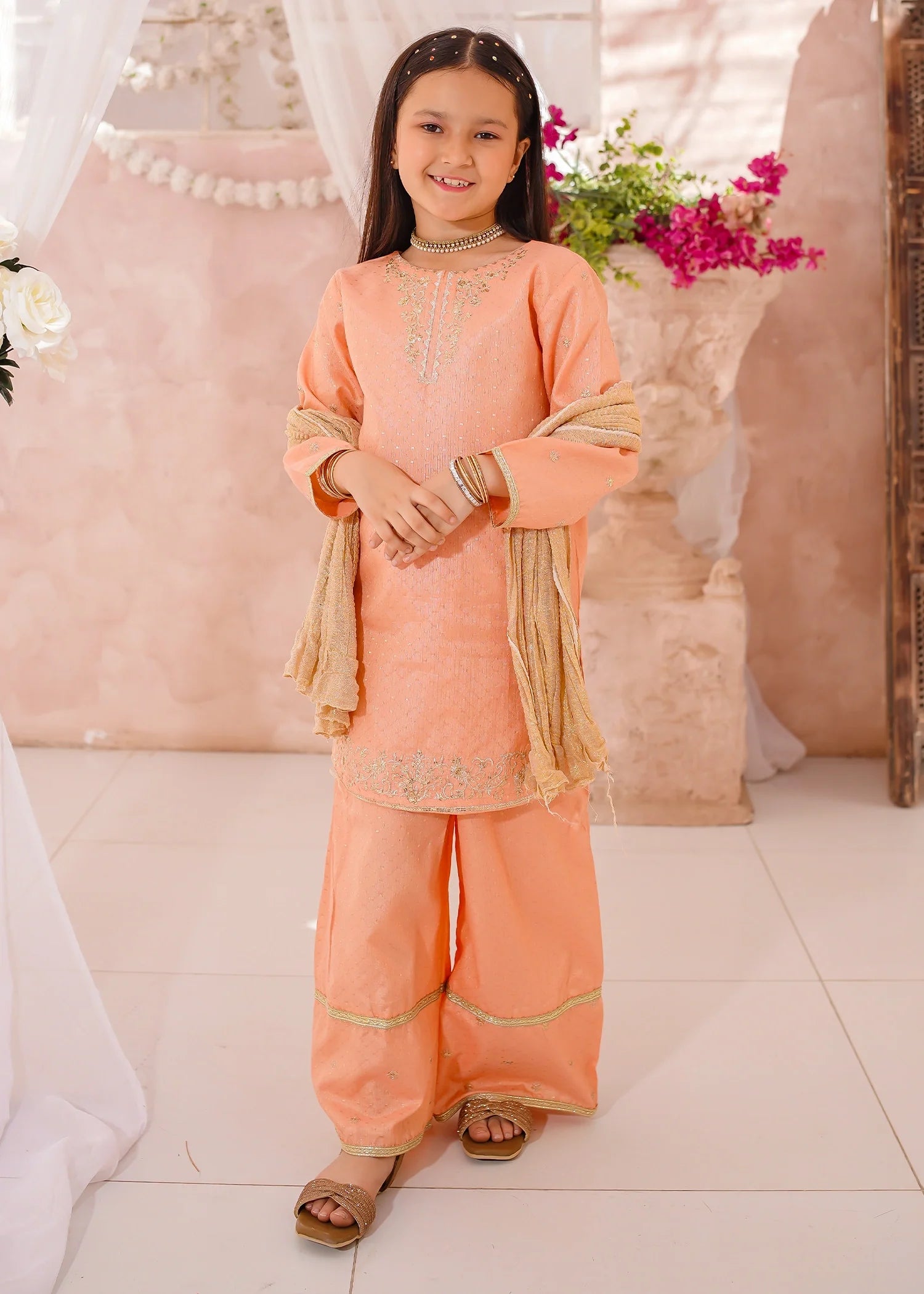 Bottom: Peach cotton lawn plain sharara trouser
