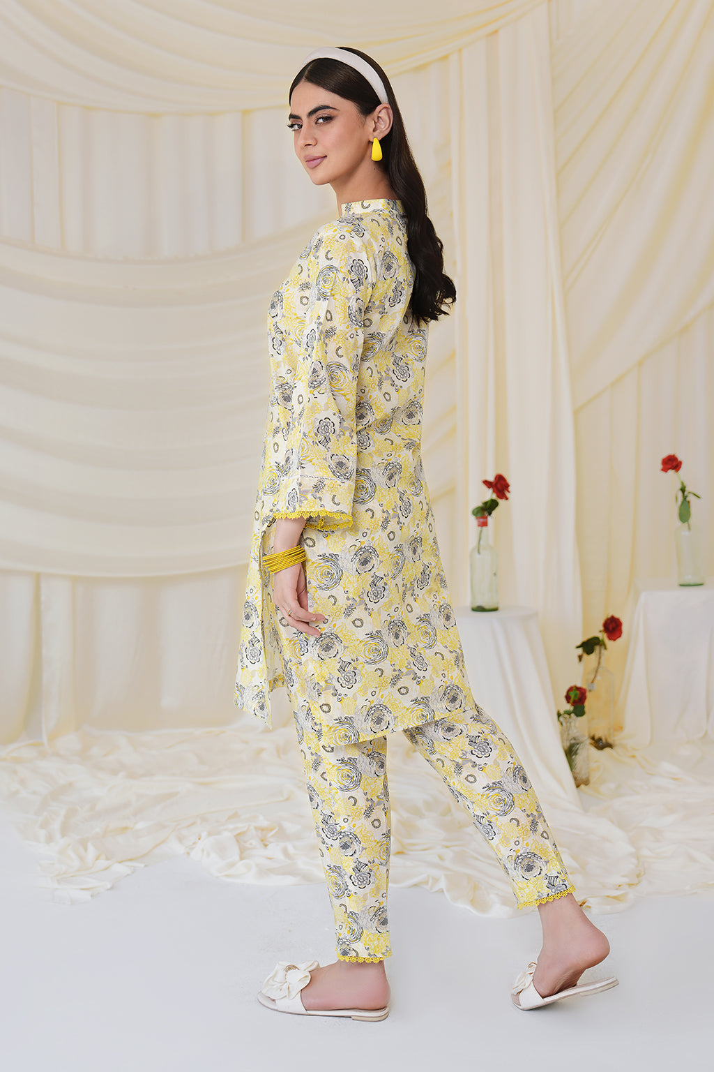 Lace embellishments on neck, daman, sleeves and trouser