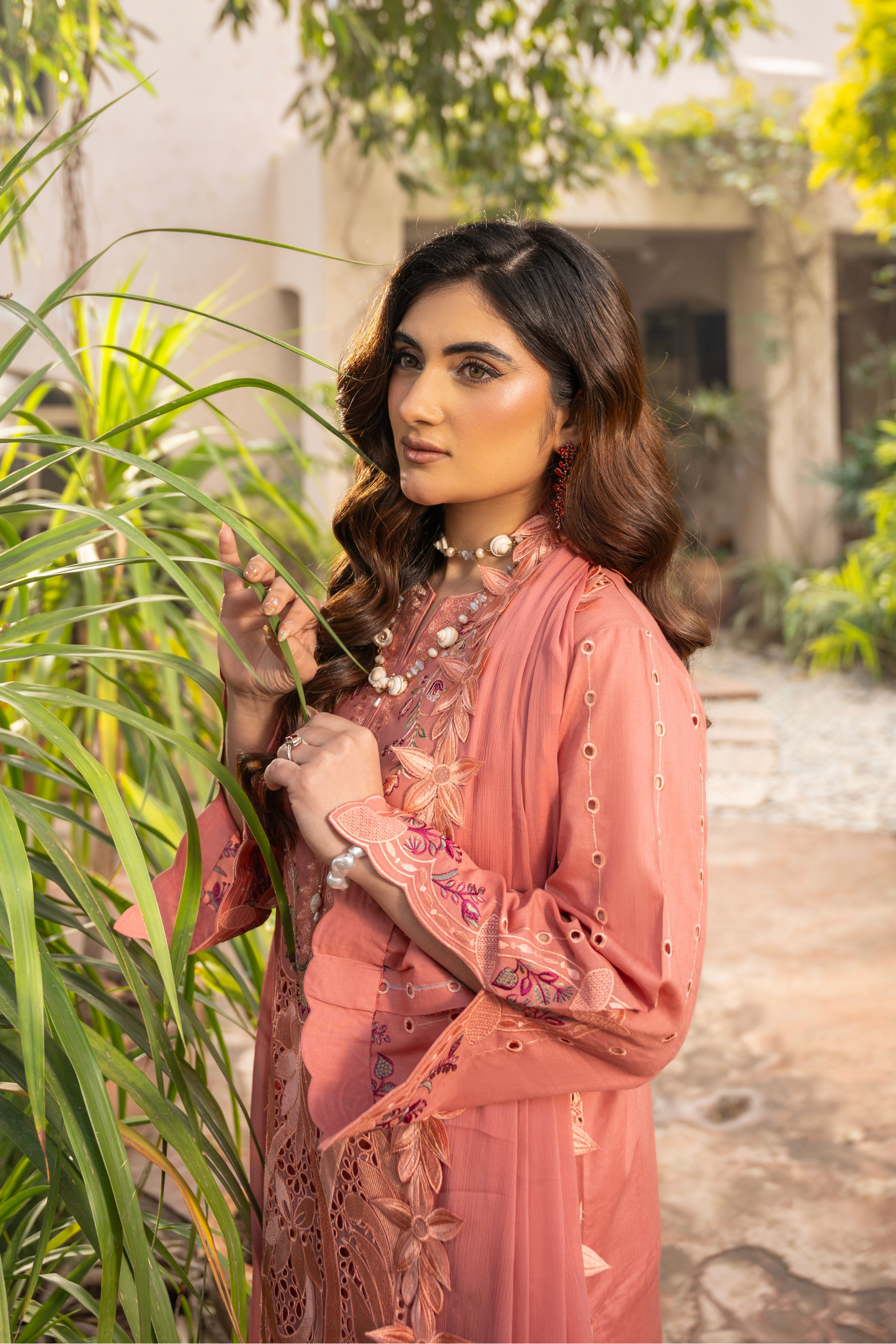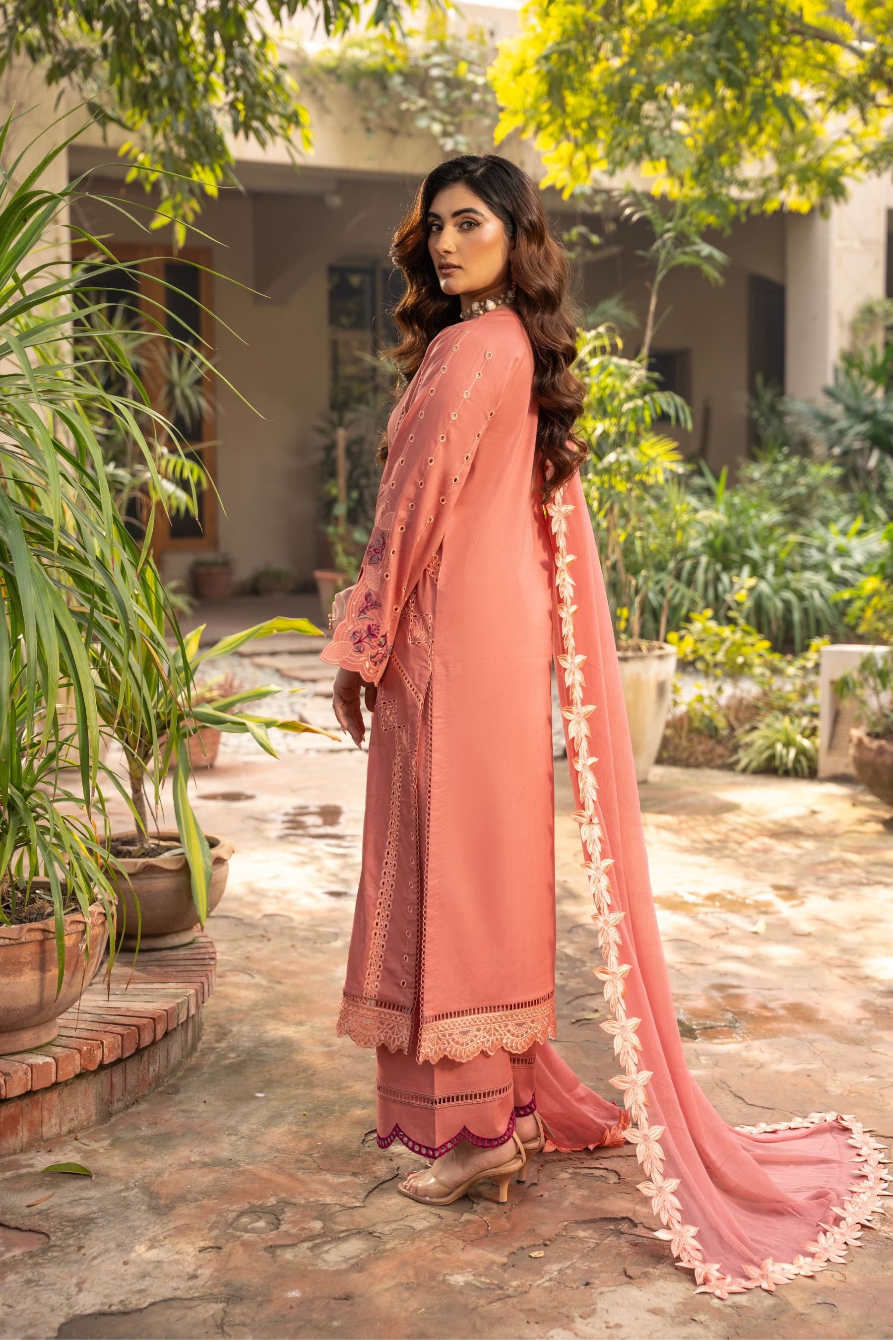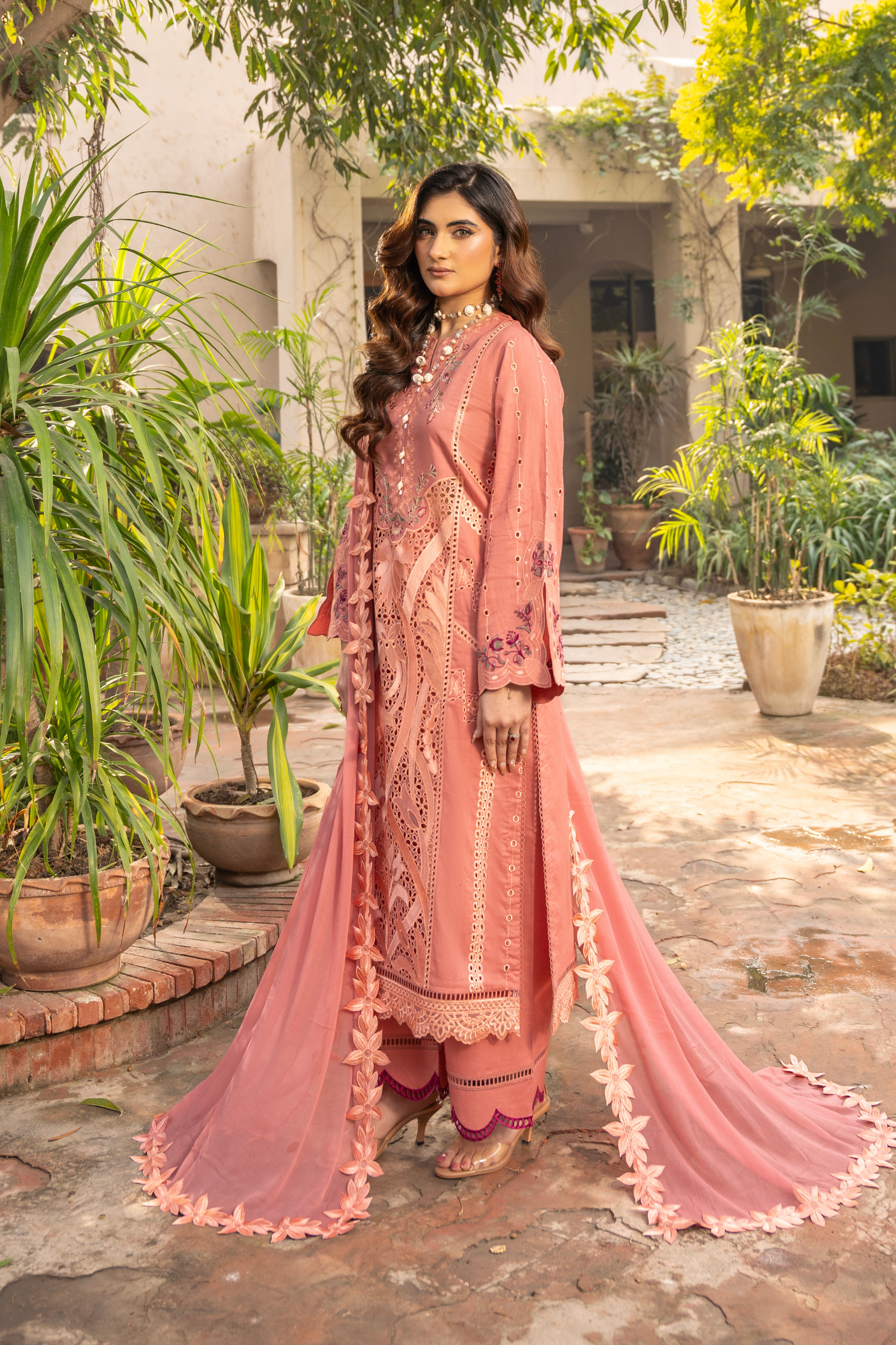 Embroidered lawn and organza front panel 13 inch.