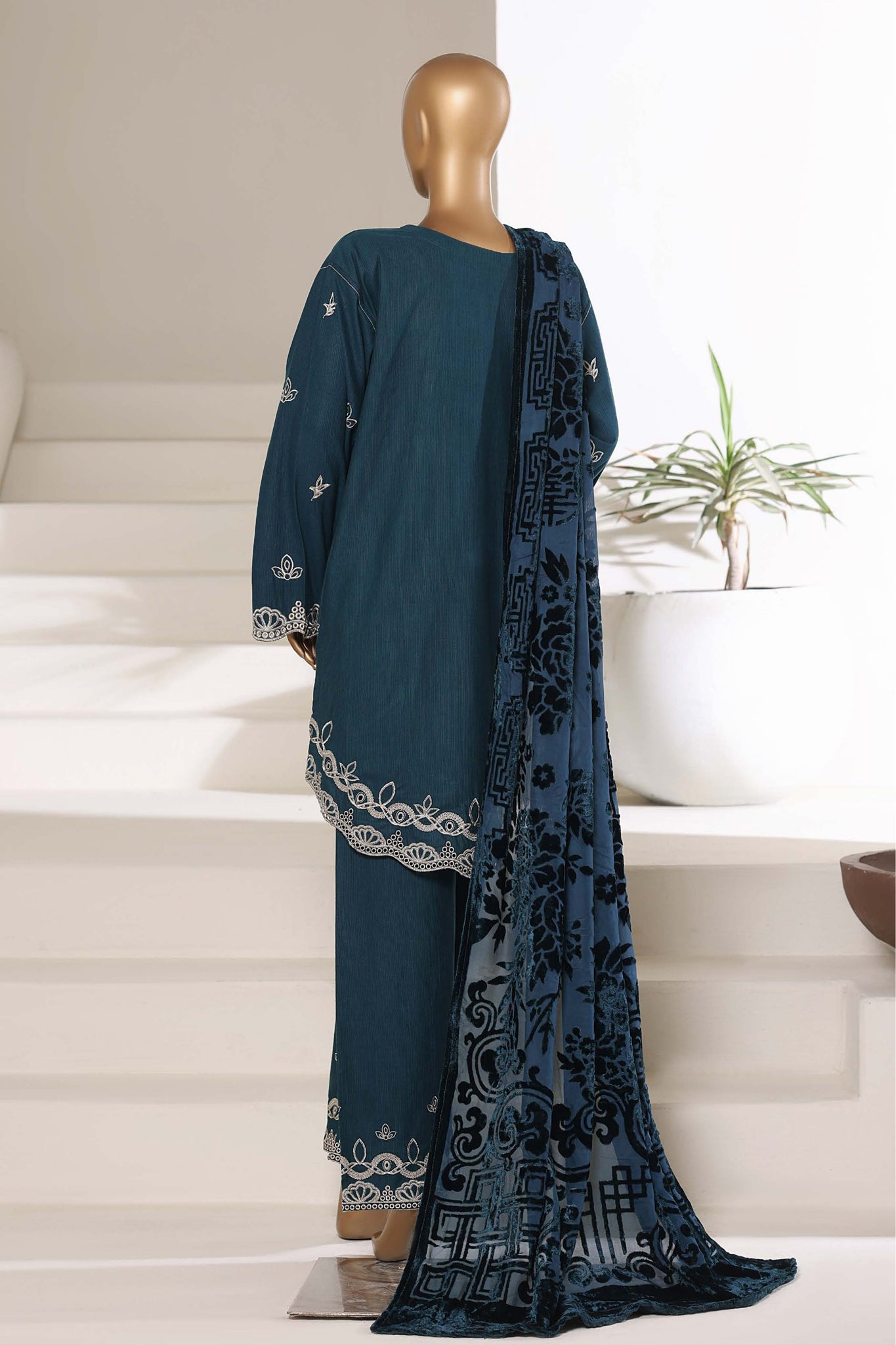 Sada Bahar Stitched 3 Piece Luxury Khaddar Karandi With Palachi Shawl Collection'2025-MEK-252-Teal