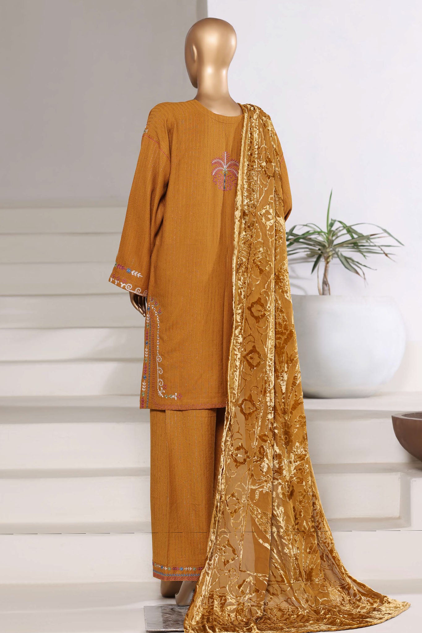 Sada Bahar Stitched 3 Piece Luxury Dhanak With Palachi Shawl Collection'2025-MEP-251-Golden