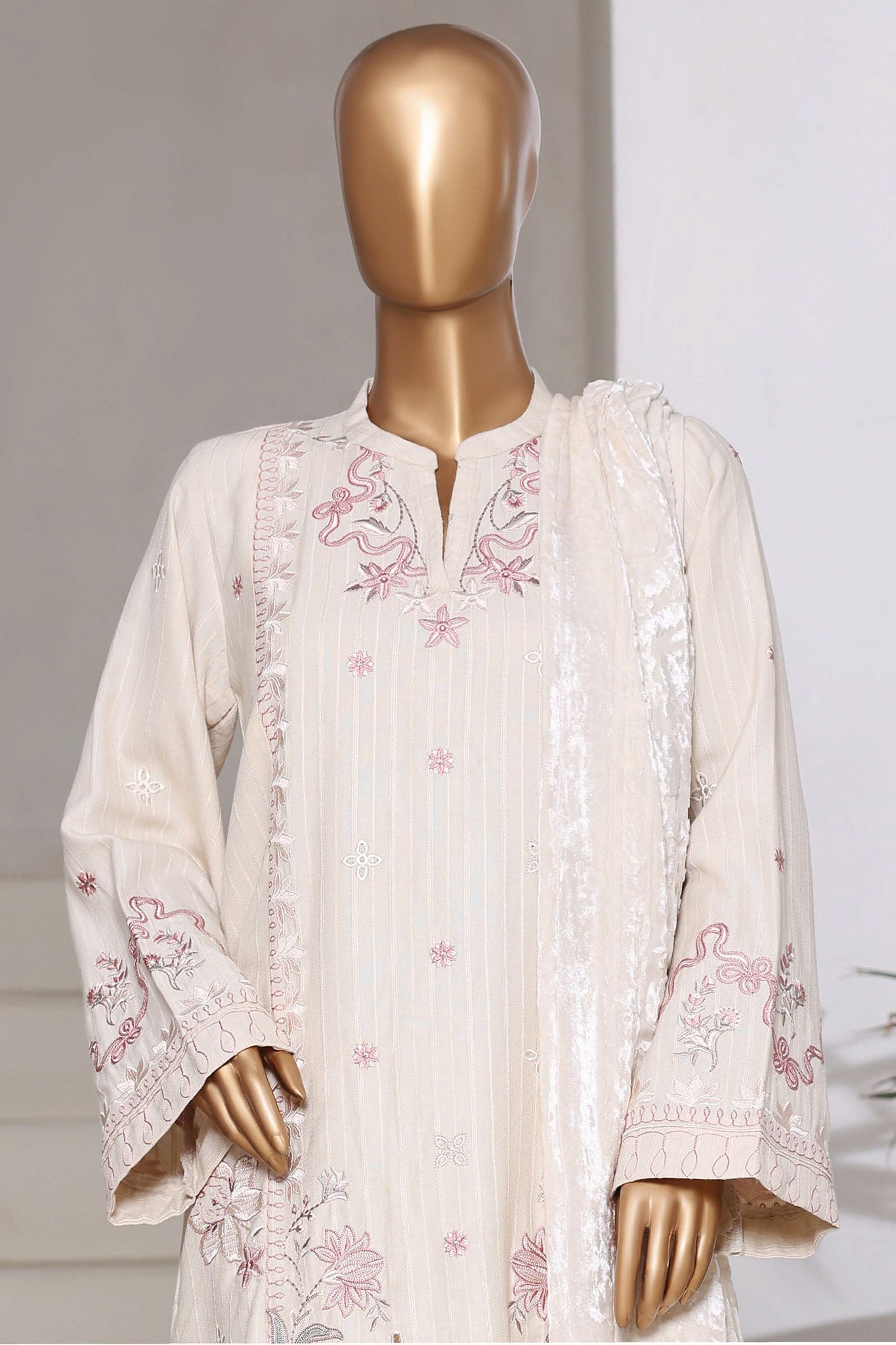 Sada Bahar Stitched 3 Piece Luxury Dhanak With Palachi Shawl Collection'2025-MEP-252-Cream