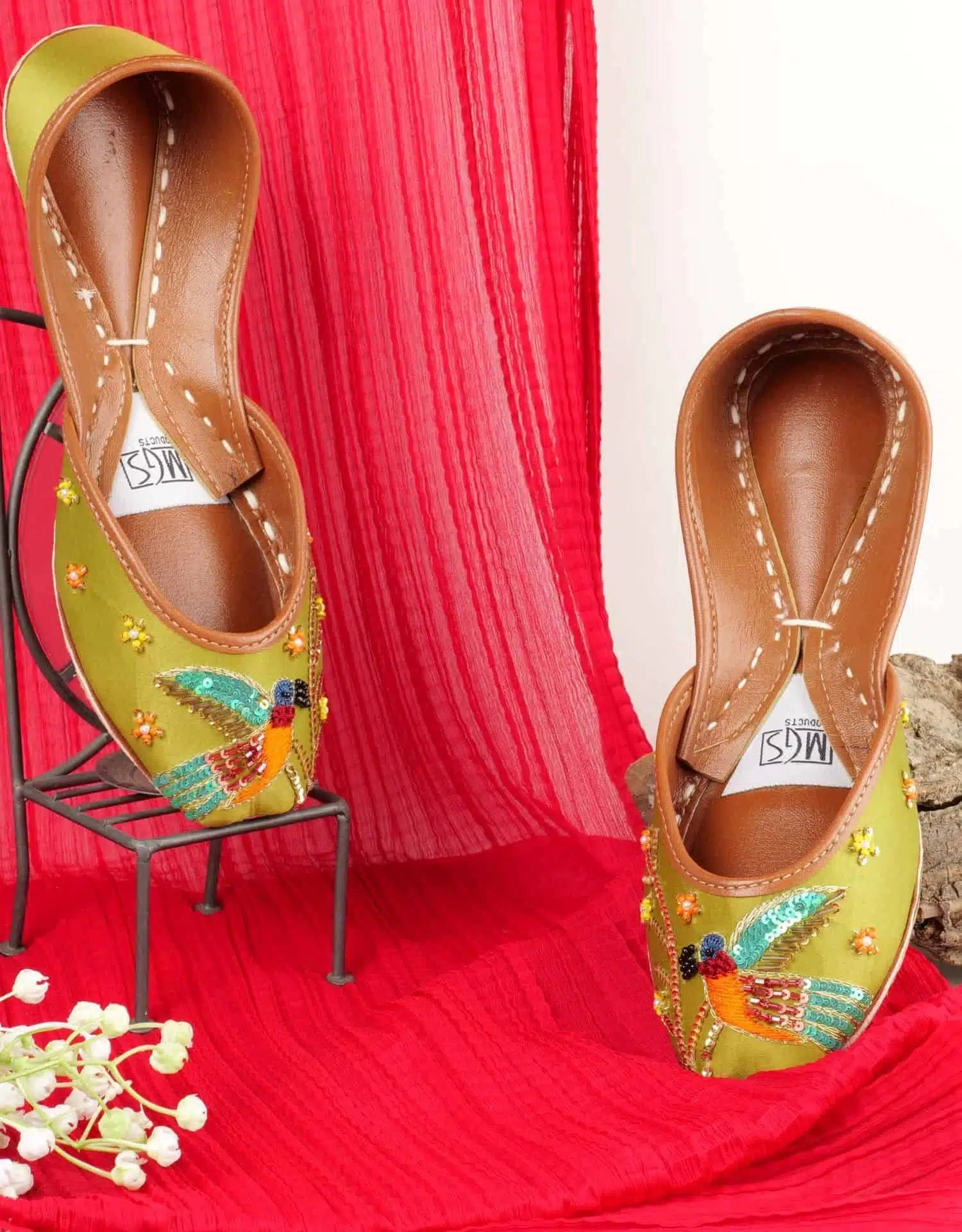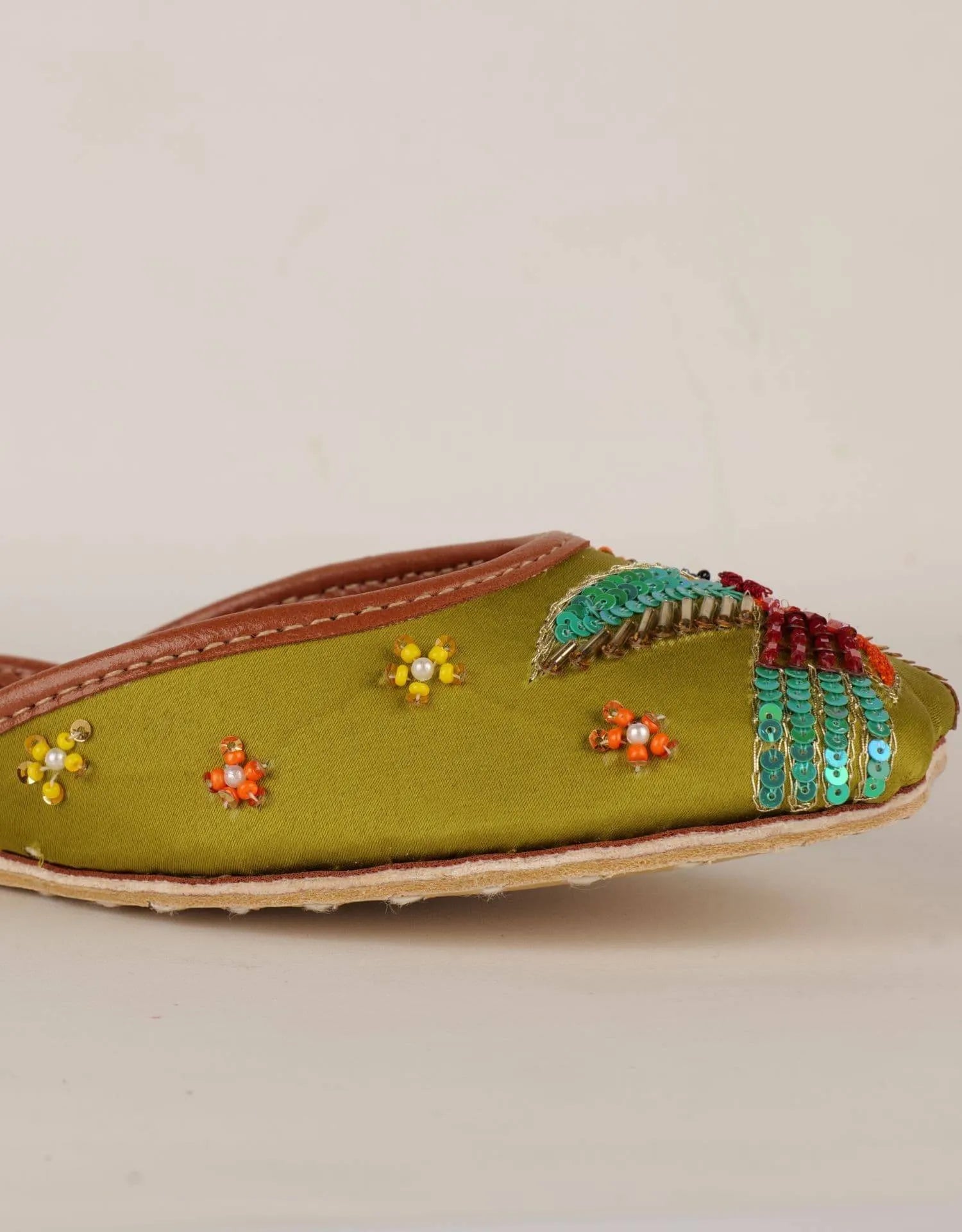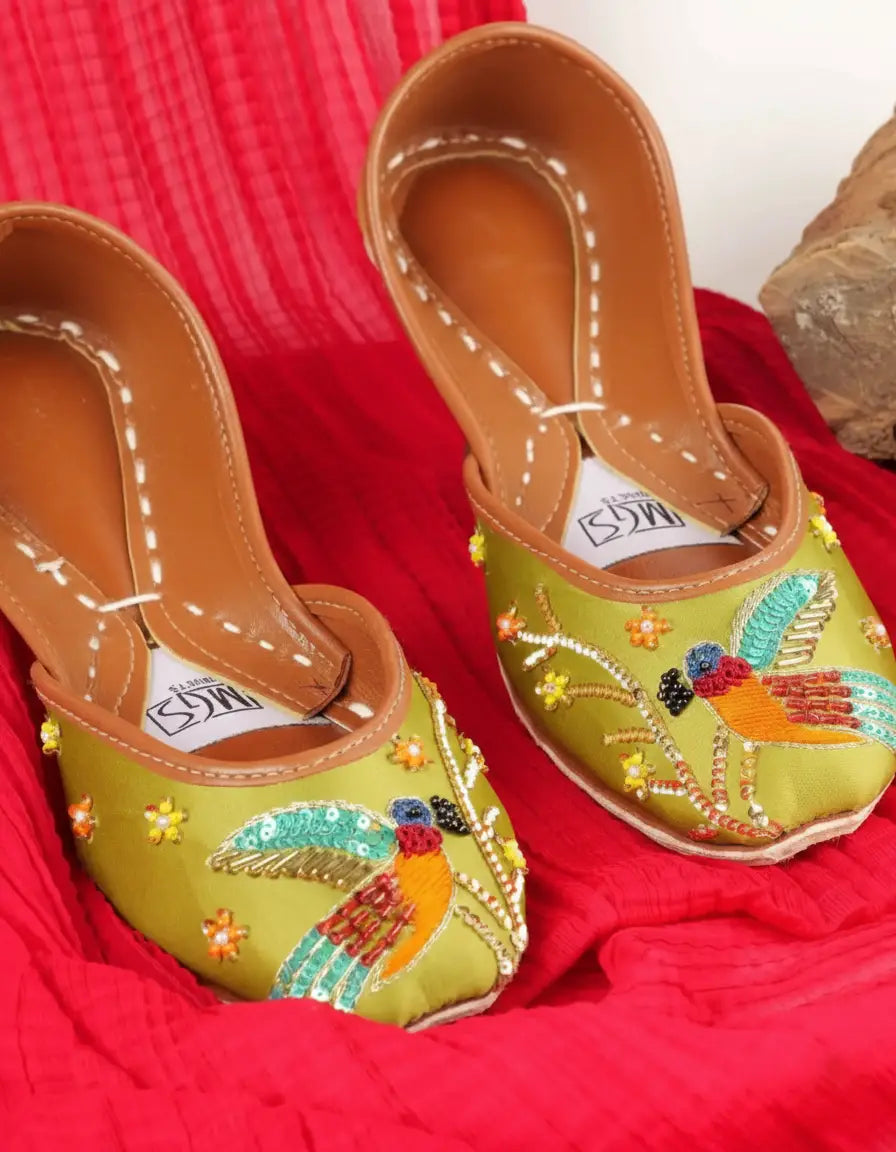 Beautiful Parakeets are in motion, embroidered in multi , accentuated with glass black beaks , gold nalki ,beautiful sequins & intricate thread work, to bind together a story of your dreams it !