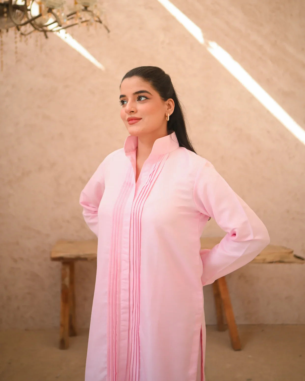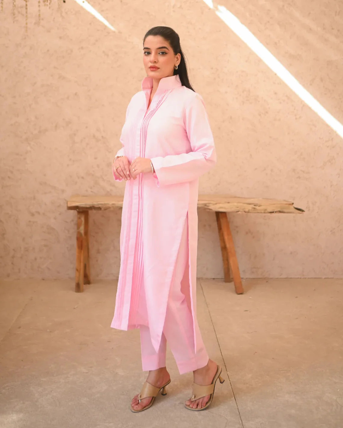 It's a two piece matching set includes a long shirt along with straight trouser.