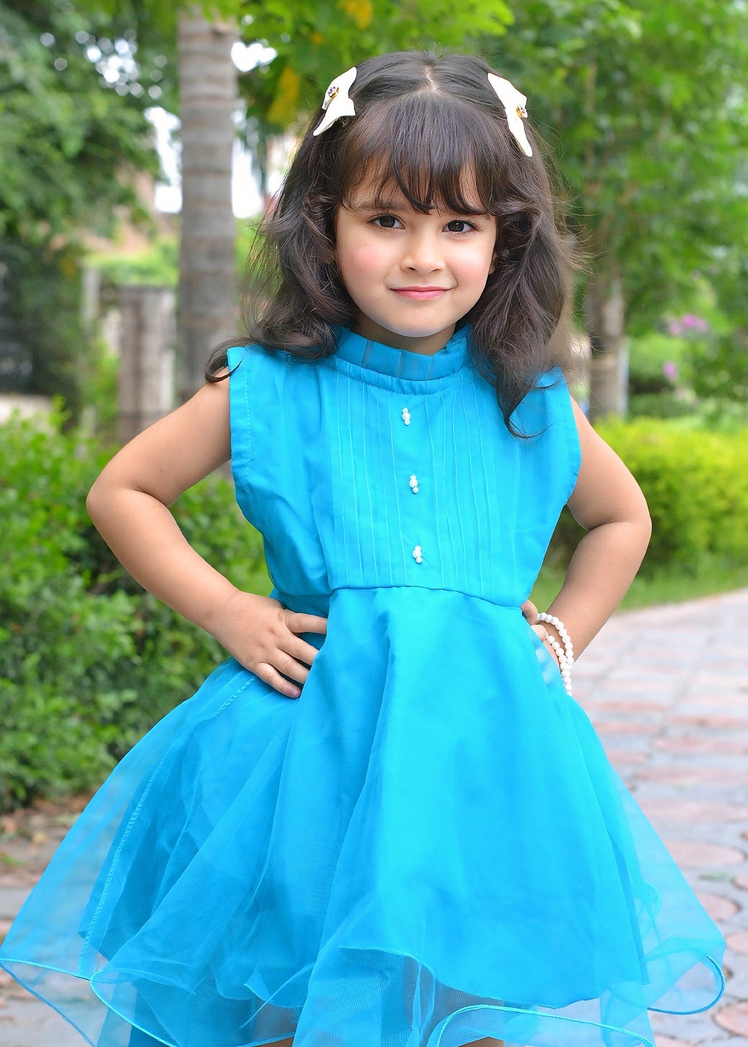A dreamy net frock in ice blue color, perfect for a graceful and charming look.