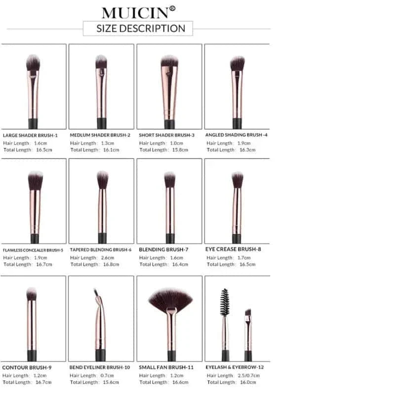 Preservation Method: Clean the brushes regularly with a gentle brush cleaner and lukewarm water. Allow them to air dry completely before storing them in the pouch. Store in a cool, dry place away from direct sunlight to maintain their shape and quality.