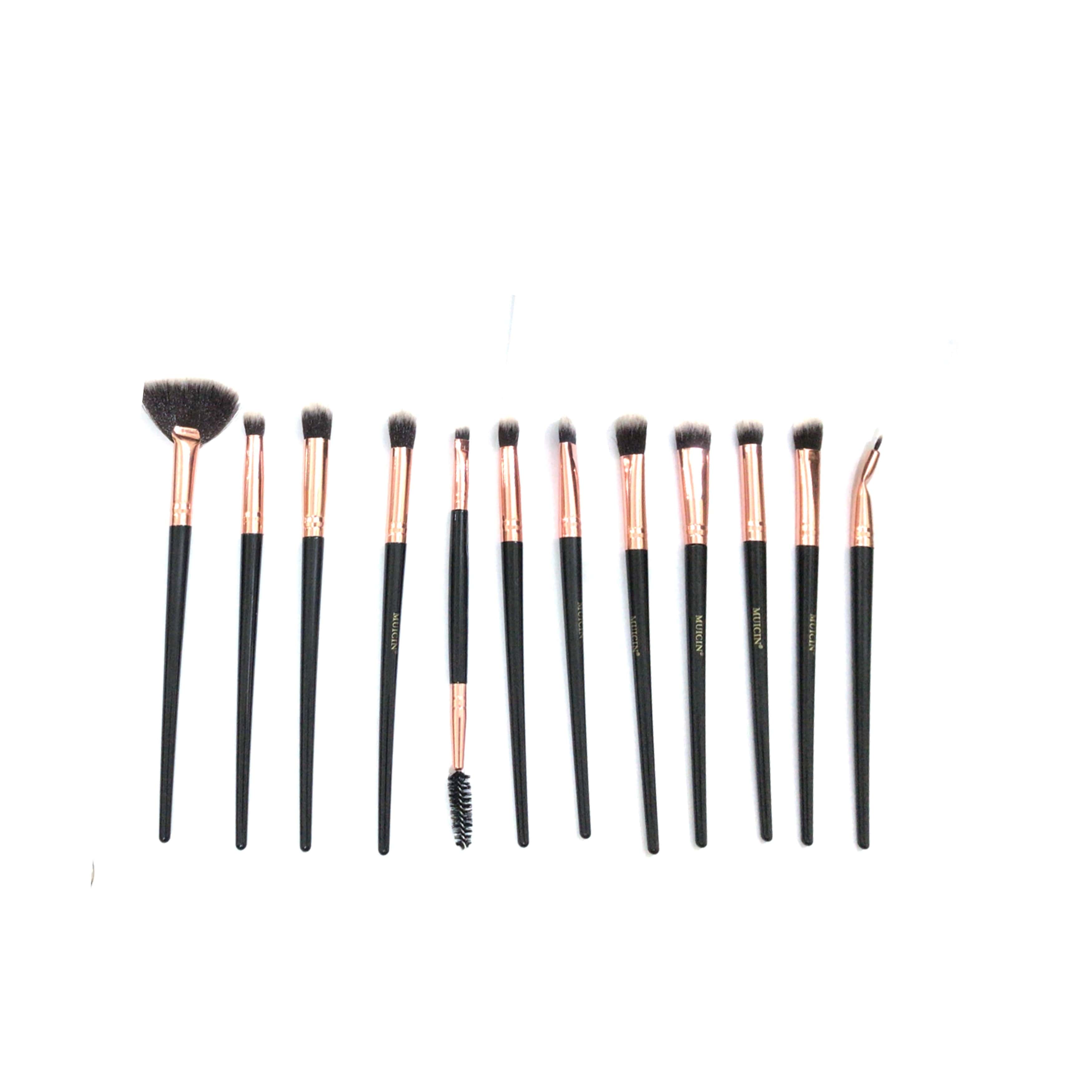 BLACK POUCH ROSE GOLD EYE BRUSH SET - 12 PIECES FOR SOPHISTICATED EYE MAKEUP