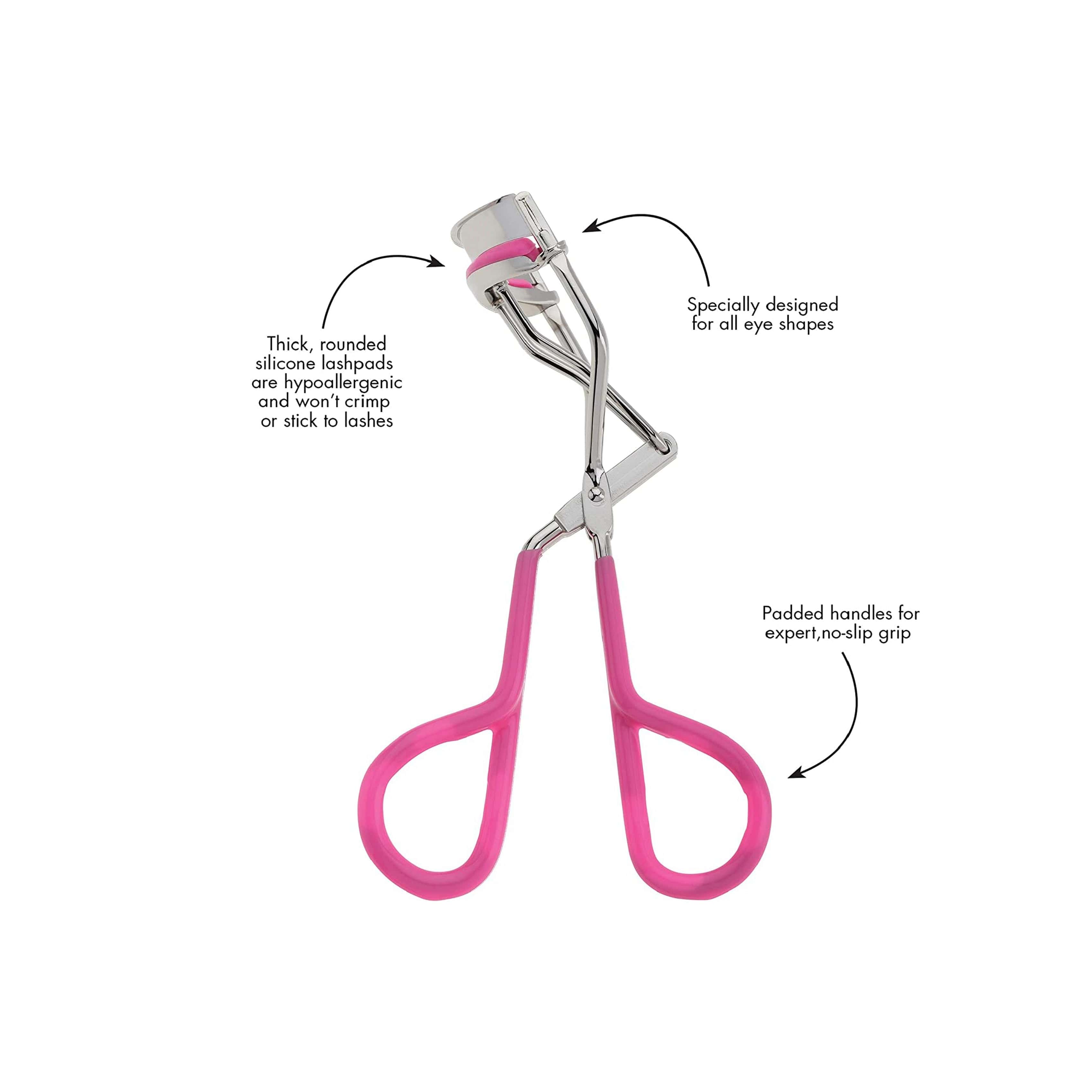 Note: Always use the curler before applying mascara to avoid damage to your lashes. Be gentle while curling to prevent pulling or breaking of lashes.
