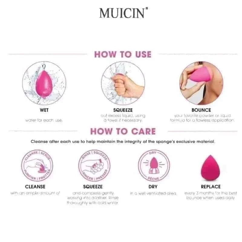 Note: Replace your makeup blender sponge every 3-6 months for optimal hygiene and performance. Avoid using the sponge with harsh chemicals or solvents.
