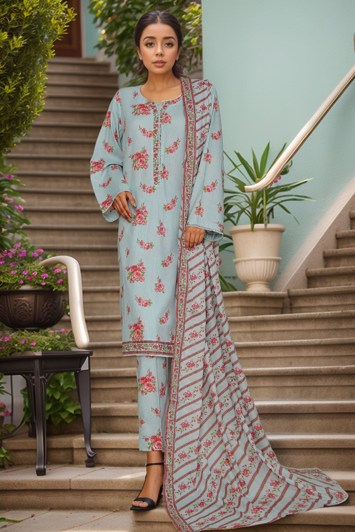 Bin Saeed Stitched 3 Piece Exc Printed Lawn Vol-05 Drop-02 Collection'2025-NSM-2343-Ferozi