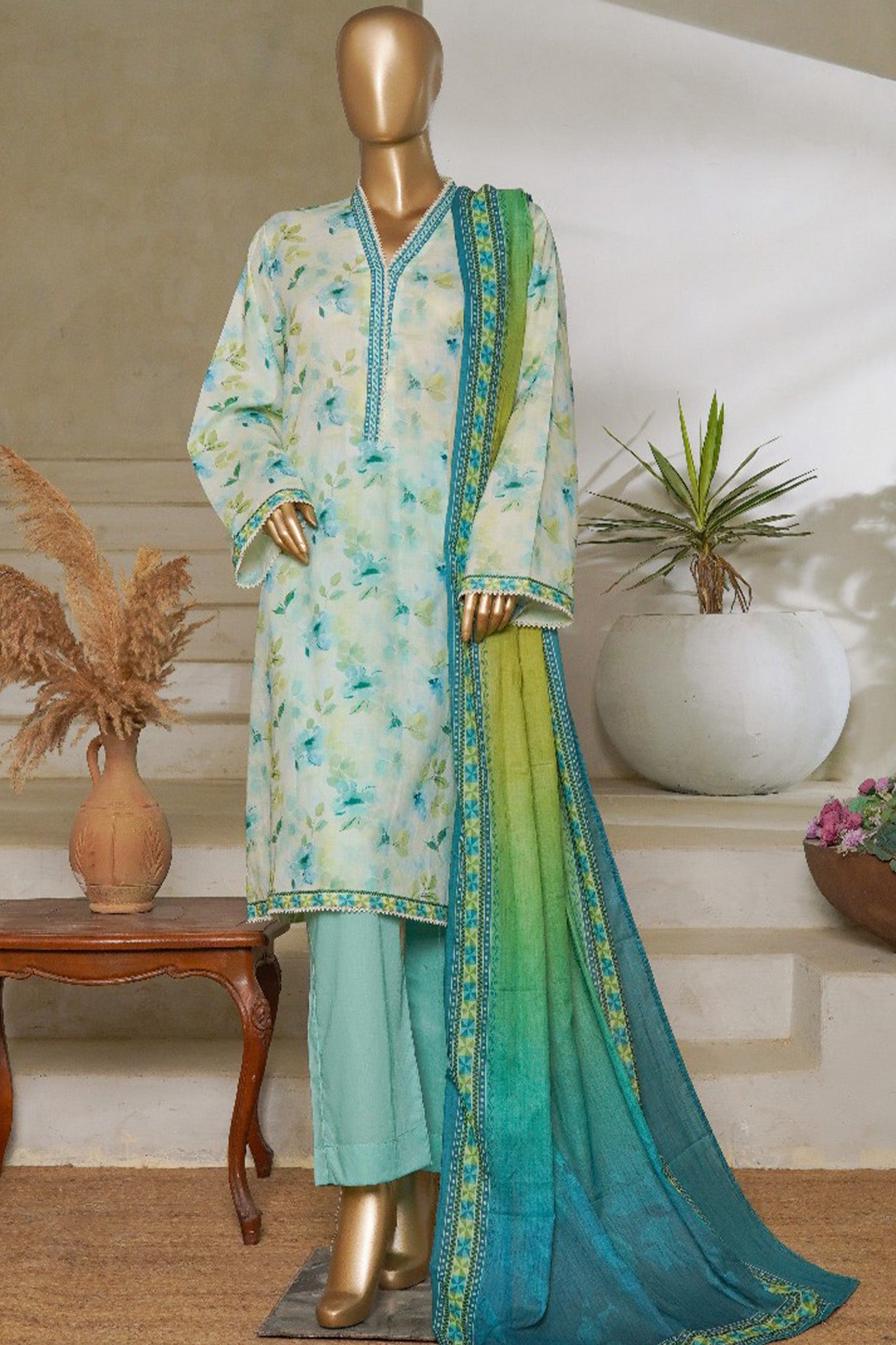Classic Charm Modern Thread By Bin Saeed Stitched 3 Piece Lawn Collection'2025-NSM-2349-Ferozi
