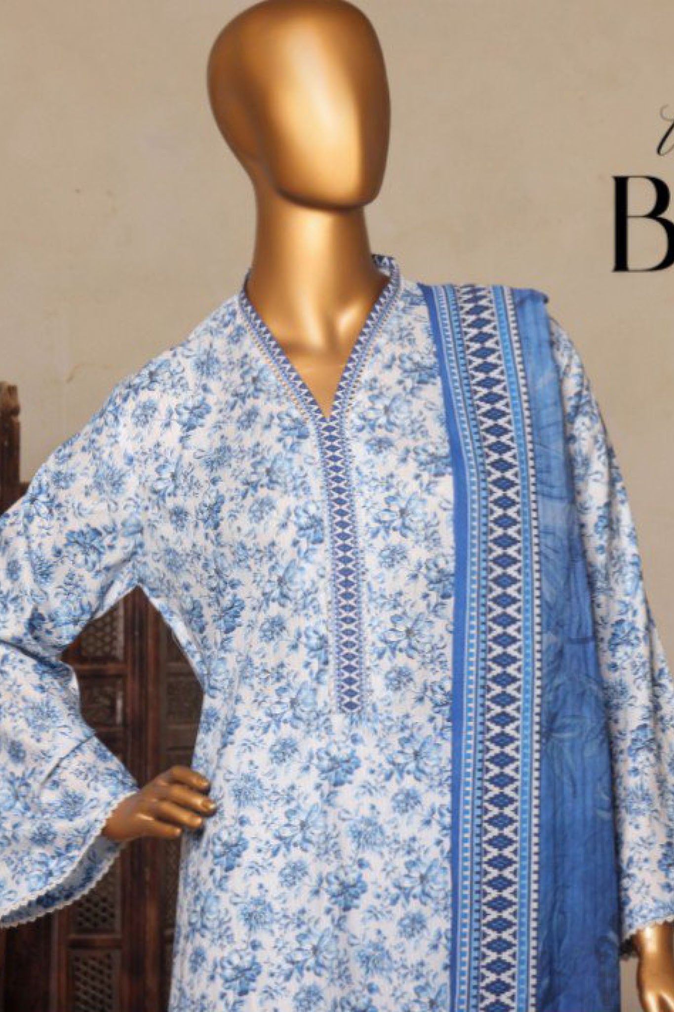 Bin Saeed Stitched 3 Piece Printed Lawn Collection'2025-NSM-2431-Blue