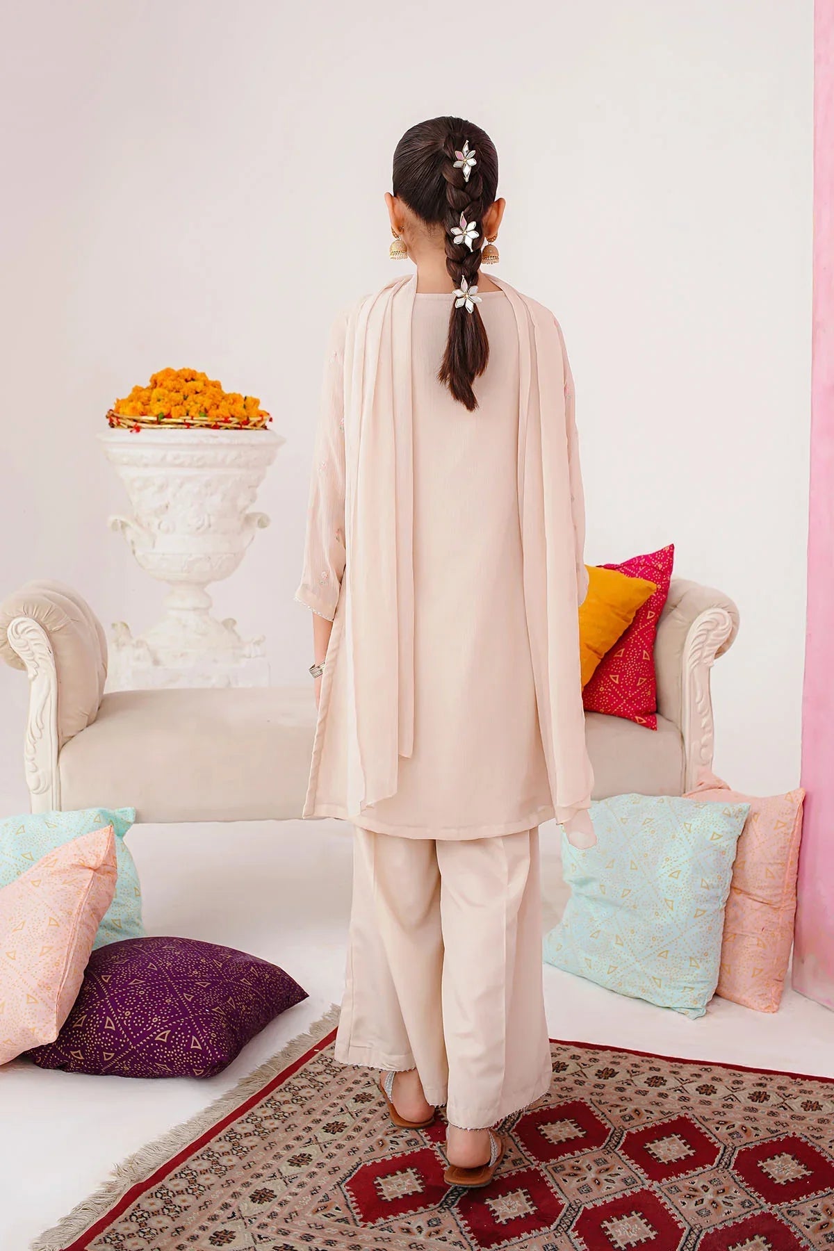 Top: Beige Chiffon Kurta With Embroidery, Tassels And Malai Crepe Lining