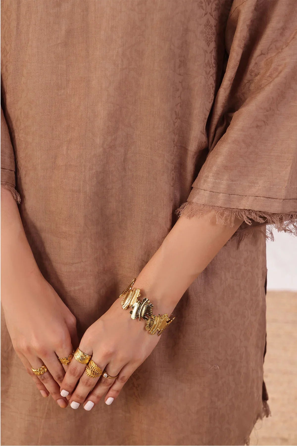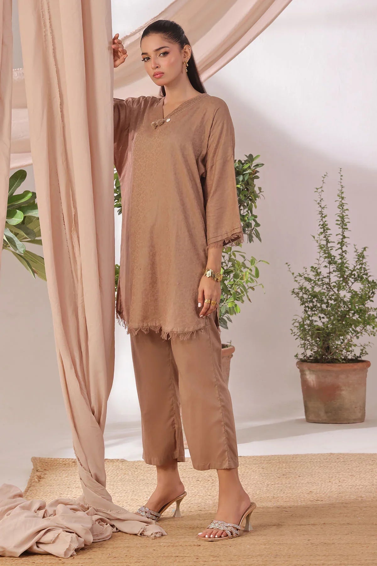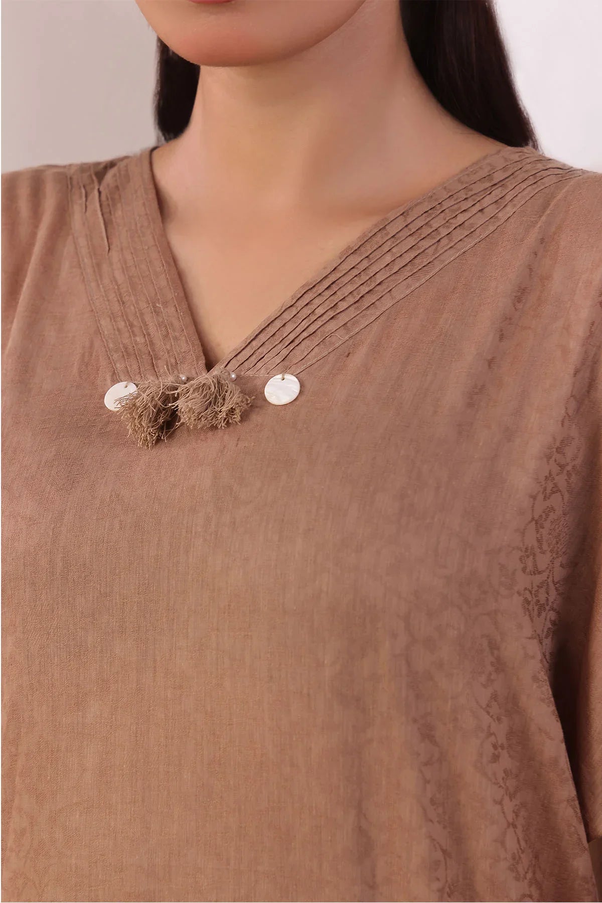 Top: Â Brown Cotton Jacquard KurtaÂ