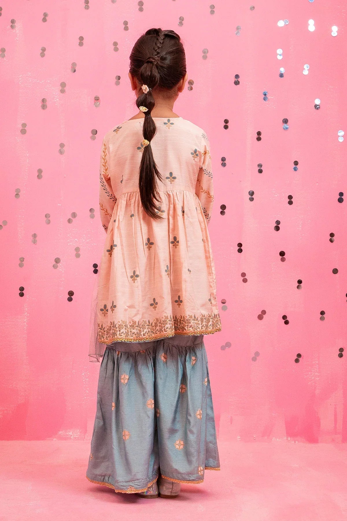 Top: Peach Cotton Silk Kurta With Screen PrintÂ