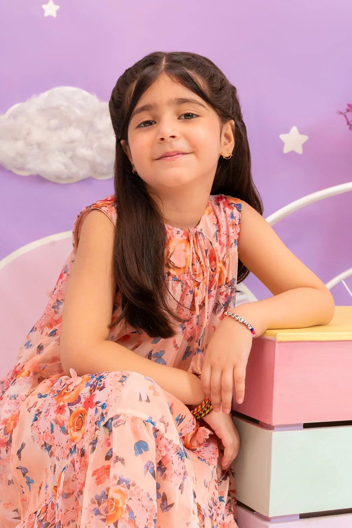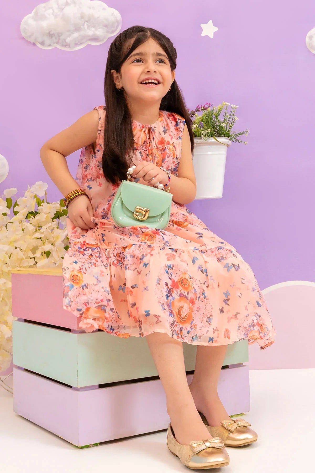 Top: Printed Chiffon Dress With Malai Crepe Lining
